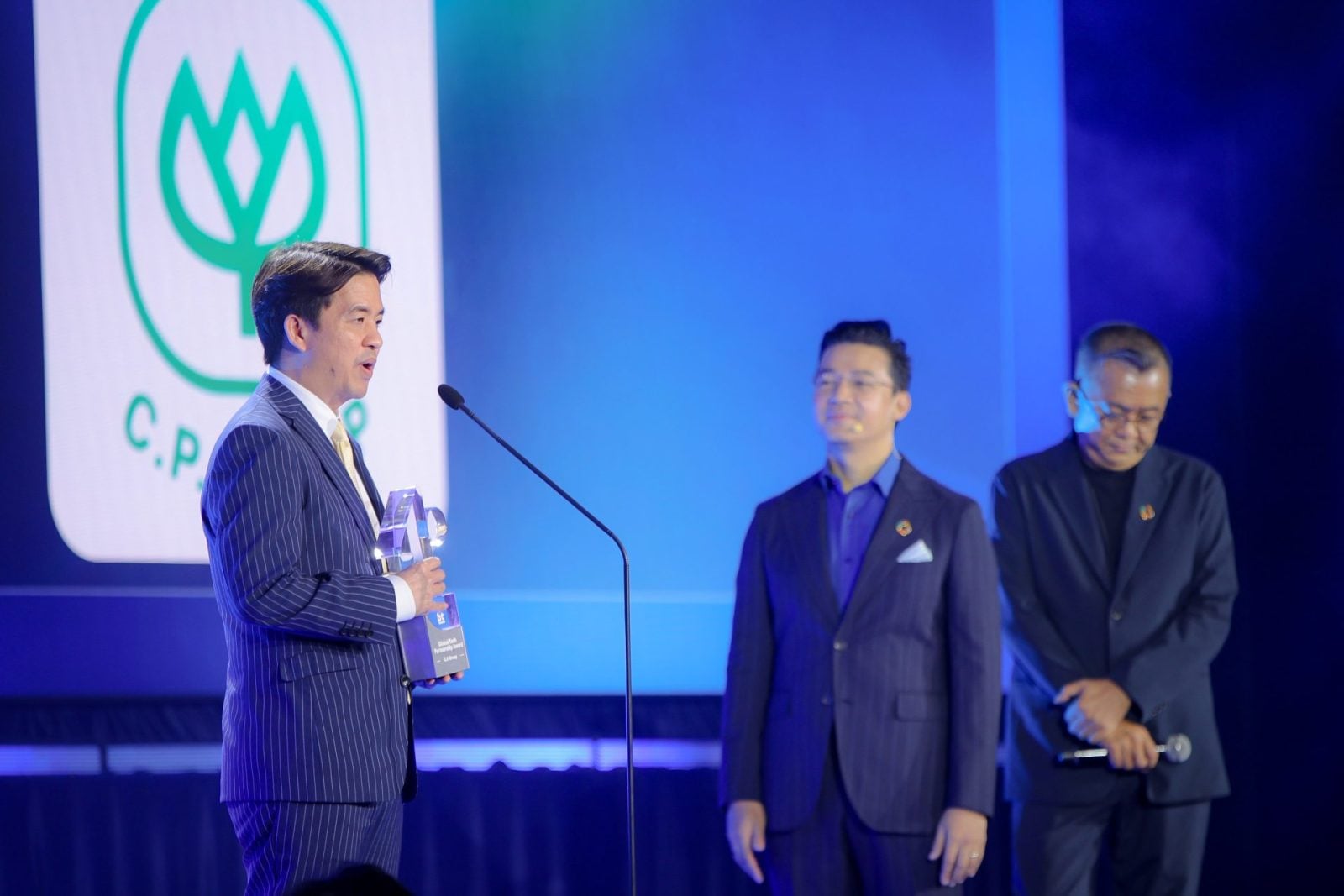 ตัวแทนผู้รับรางวัล ได้แก่ ดร.ธีระพล ถนอมศักดิ์ยุทธ ประธานคณะผู้บริหาร ด้านความยั่งยืนองค์กรและการพัฒนากลยุทธ์ บริษัท เครือเจริญโภคภัณฑ์ จำกัด