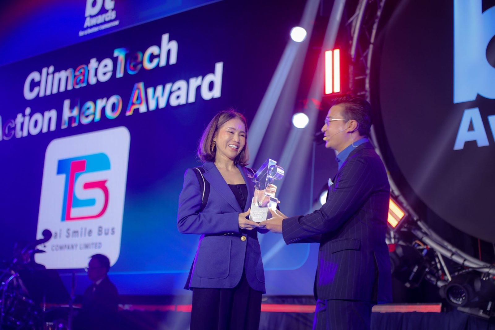 ตัวแทนผู้รับรางวัล ได้แก่ คุณกุลพรภัสร์ วงศ์มาจารภิญญา ประธานเจ้าหน้าที่บริหาร บริษัท ไทย สมายล์ บัส จำกัด