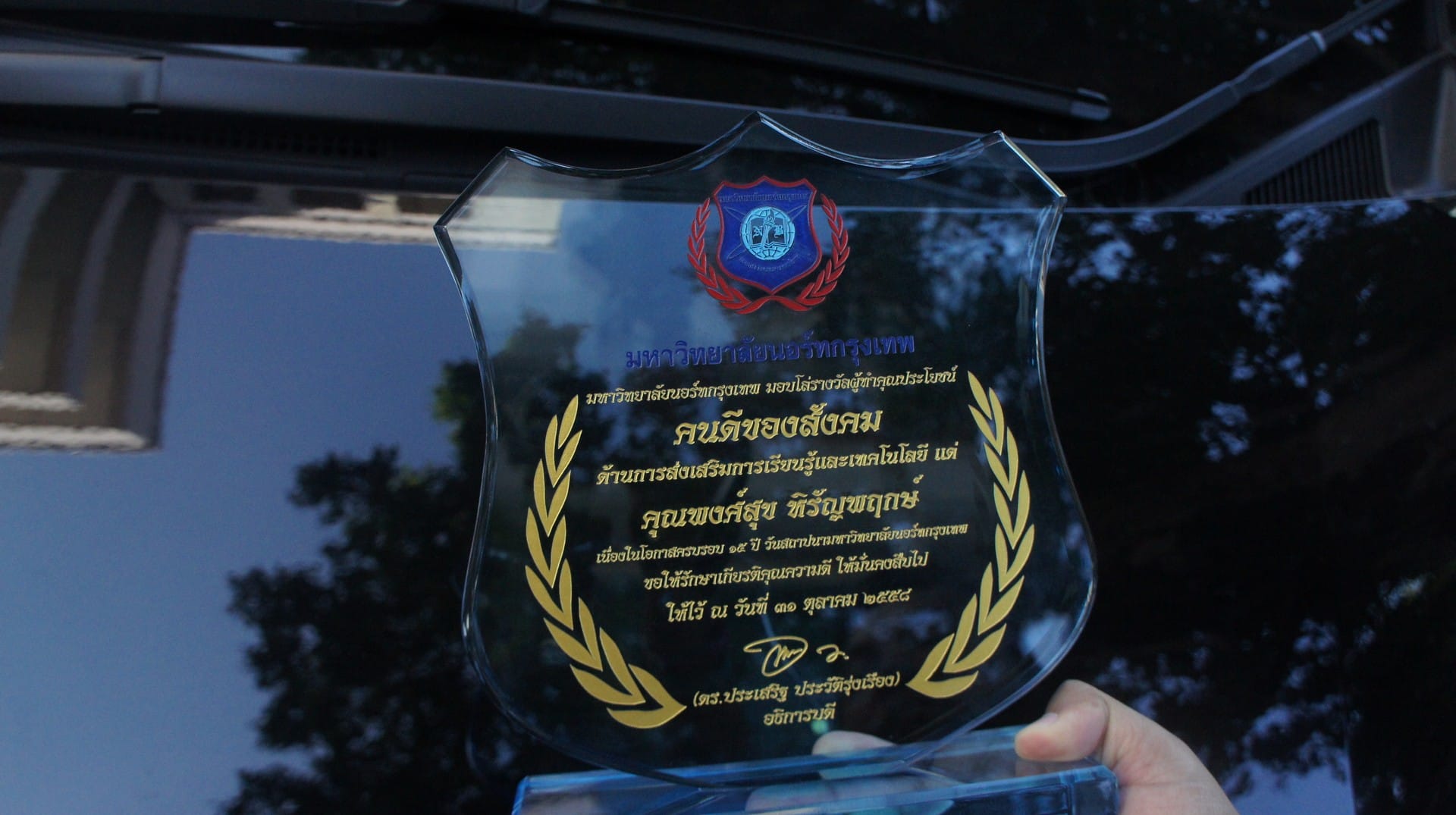 ซึ่งในงานนี้ คุณพงศ์สุข หิรัญพฤกษ์ ได้รับโล่รางวัล “คนดีของสังคม” ในด้านการส่งเสริมสนับสนุนการเรียนรู้และเทคโนโลยีจากทางมหาวิทยาลัย นอกเหนือจากนี้ ยังมีบุคคลและองค์กรที่ร่วมรับโล่รางวัลในสาขาต่างๆ ดังนี้
