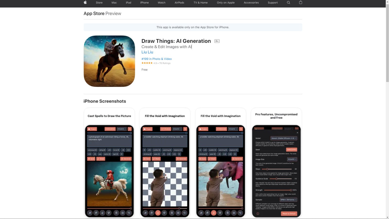 14/11/202210 พฤศจิกายน Liu Liu นักพัฒนาซอฟต์แวร์จากซานฟรานซิสโกได้เปิดตัวแอป Draw Things แอปสร้างภาพด้วย AI ให้ติดตั้งได้ฟรีจาก App Store ซึ่งช่วยให้ผู้ใช้ iPhone สามารถเรียกใช้โมเดล Stable Diffusion ด้วยการพิมพ์คำอธิบายเกี่ยวกับภาพลงไป จากนั้นแอปจะสังเคราะห์ภาพขึ้นมาได้อย่างเสมือนจริงในเวลาไม่กี่นาที และเป็นการสร้างภาพแบบส่วนตัวบนฮาร์ดแวร์หรืออุปกรณ์ของเราเอง
