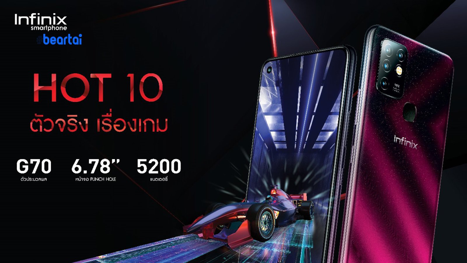 22/09/2020คอเกมที่กำลังมองหาโทรศัพท์มือถือเล่นเกมเตรียมตัวให้พร้อม เพราะ “อินฟินิกซ์” แบรนด์สมาร์ตโฟนสำหรับคนรุ่นใหม่ พร้อมเปิดตัว “Infinix Hot 10 ตัวจริงเรื่องเกม” อย่างเป็นทางการในทุกช่องทางของลาซาด้า วันศุกร์ที่ 2 ตุลาคมนี้ บอกเลยว่า Infinix Hot 10 ถือว่าเป็นสมาร์ตโฟนที่ยอดเยี่ยมที่สุดในทุกรายละเอียดในช่วงราคาไม่เกิน 4,000 บาท เพราะสเปกที่ใส่มาให้นั้นเรียกว่าจัดเต็ม! ทั้งหน้าจอ HD+ Punch Hole ขนาด 6.78 นิ้ว ที่ใหญ่ขึ้น กว้างขึ้น และช่วยให้ดูหนังฟังเพลงได้สนุกยิ่งขึ้น พร้อมมอบประสบการณ์การใช้งานที่ลื่นไหลกว่าเดิมจากหน่วยประมวลผล Helio G70 Octa-Core และ RAM 4 GB ที่ให้ทั้งความเร็วและความแรงในการเล่นเกมแบบไม่มีสะดุด…