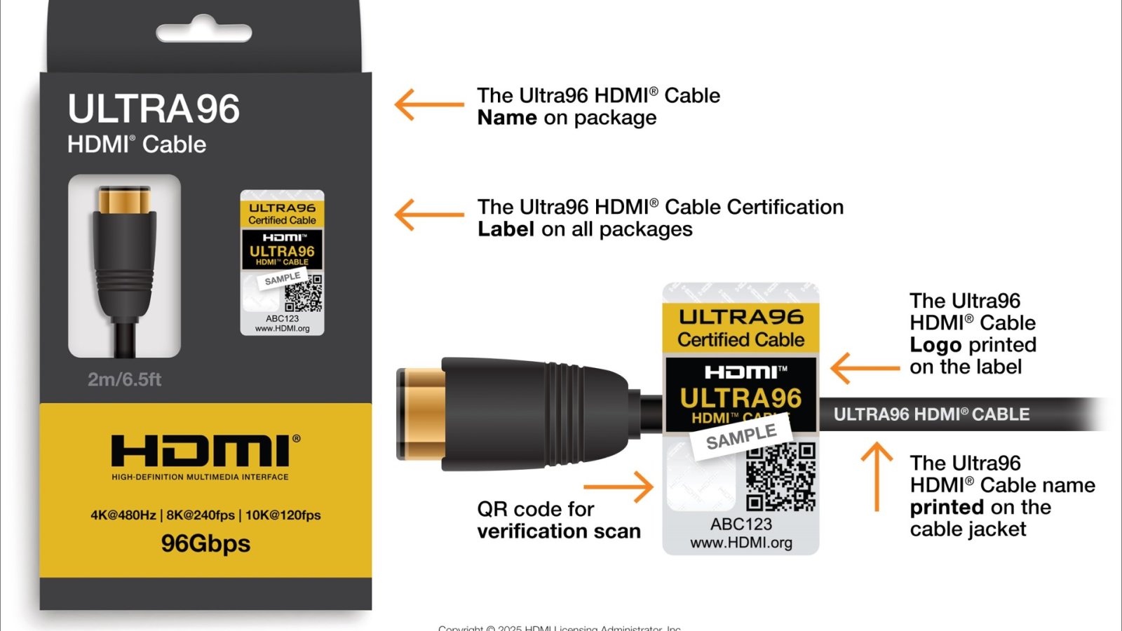 HDMI Forum ได้เปิดตัว HDMI 2.2 ในงาน CES 2025 ซึ่งเผยว่ามาพร้อมด้วยคุณสมบัติใหม่ที่ดีขึ้น โดยการเพิ่มแบนด์วิดท์รวมเป็น 96Gbps และยังได้เปิดตัวสาย HDMI รุ่นใหม่ Ultra96 เพื่อรองรับกับแบนด์วิดท์ 96Gbps (จิกะบิตต่อวินาที) ของ HDMI 2.2 ซึ่งสามารถช่วยแก้ปัญหาการซิงค์ภาพไม่ตรงกับเสียง และอื่น ๆ อีกมากมาย นอกจากนี้ระบุว่าการจัดจำหน่ายที่ตัวกล่องจะมีฉลากต่อต้านการปลอมแปลงและมีตราสัญลักษณ์ ‘Ultra96’News