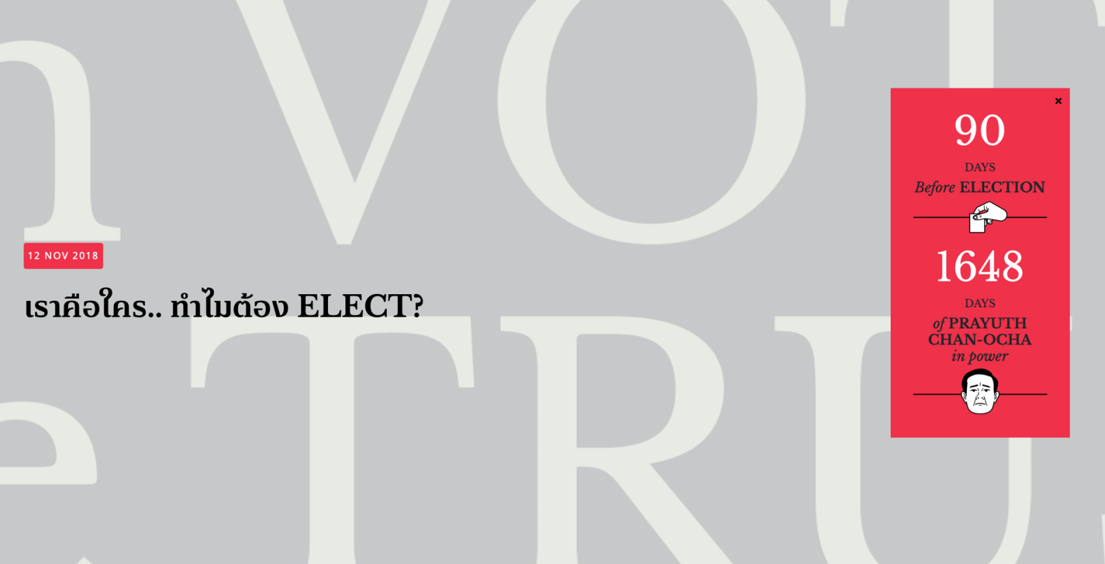 25/11/2018ในโอกาสที่การเลือกตั้งครั้งแรกในรอบ 8 ปีใกล้เข้ามาในเดือนกุมภาพันธ์ 2562 ในยุคที่ข้อมูลข่าวสารมีความสำคัญต่อการตัดสินใจของประชาชน ว่าจะเลือกใครเป็นผู้แทนหรือผู้นำประเทศ ในวันที่ 18 พ.ย. ที่หอศิลปวัฒนธรรมแห่งกรุงเทพมหานคร Boonmee Lab, Minimore และ The MATTER จึงร่วมกันเปิดตัวเว็บไซต์สื่อข้อมูลการเมืองและการเลือกตั้ง Elect.in.th ด้วยหวังว่าจะเป็นอีกแหล่งข้อมูลสำคัญสำหรับประชาชนใช้ตรวจสอบนโยบาย ประวัติ…