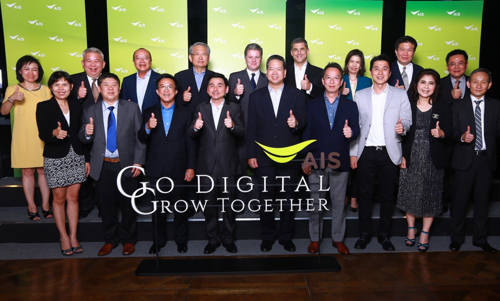09/12/2015เอไอเอส นำโดย นายสมชัย เลิศสุทธิวงค์ ประธานเจ้าหน้าที่บริหาร จัดงาน “Go Digital Grow Together” เพื่อรวมพลังพาร์ทเนอร์ในการสร้างโอกาสใหม่ของการดำเนินธุรกิจ รวมทั้งร่วมกันก้าวไปข้างหน้าและเติบโตไปพร้อมกัน พร้อมขอบคุณที่อยู่เคียงข้าง เพื่อส่งมอบสินค้าและบริการที่ดีที่สุด ให้ลูกค้าสามารถใช้ชีวิตในยุคดิจิทัลได้ตามความต้องการและได้รับประสบการณ์เต็มรูปแบบ