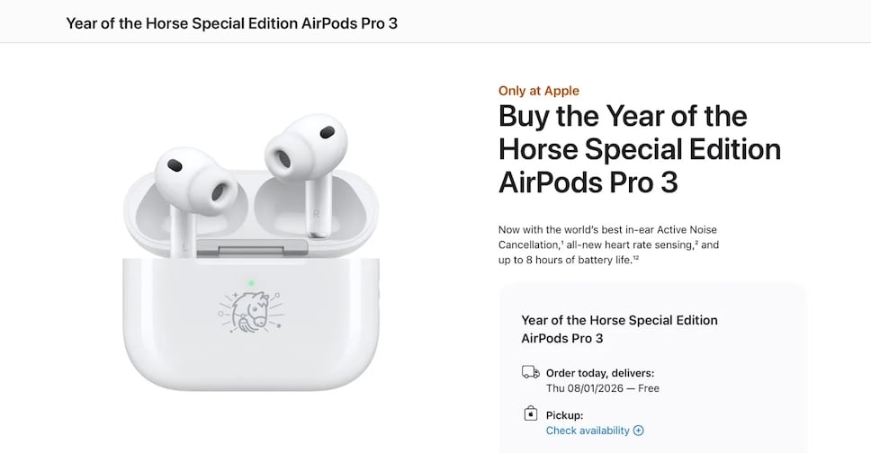 ต้อนรับเทศกาลตรุษจีนปี 2026 ที่กำลังจะมาถึง Apple ก็ไม่พลาดที่จะส่ง AirPods Pro 3 รุ่นพิเศษ “Year of the Horse” ธีมปีม้า โดยมาพร้อมกับการสลักลายอีโมจิรูปม้า ตามธรรมเนียมของ Apple ที่มักจะเปิดตัว AirPods รุ่นพิเศษสลักลวดลายเก๋ ๆ ออกมาในช่วงเทศกาลปีใหม่ของทุกปี อย่างปีมังกร ปีวัว ปีเสือ ปีกระต่าย และปีงู