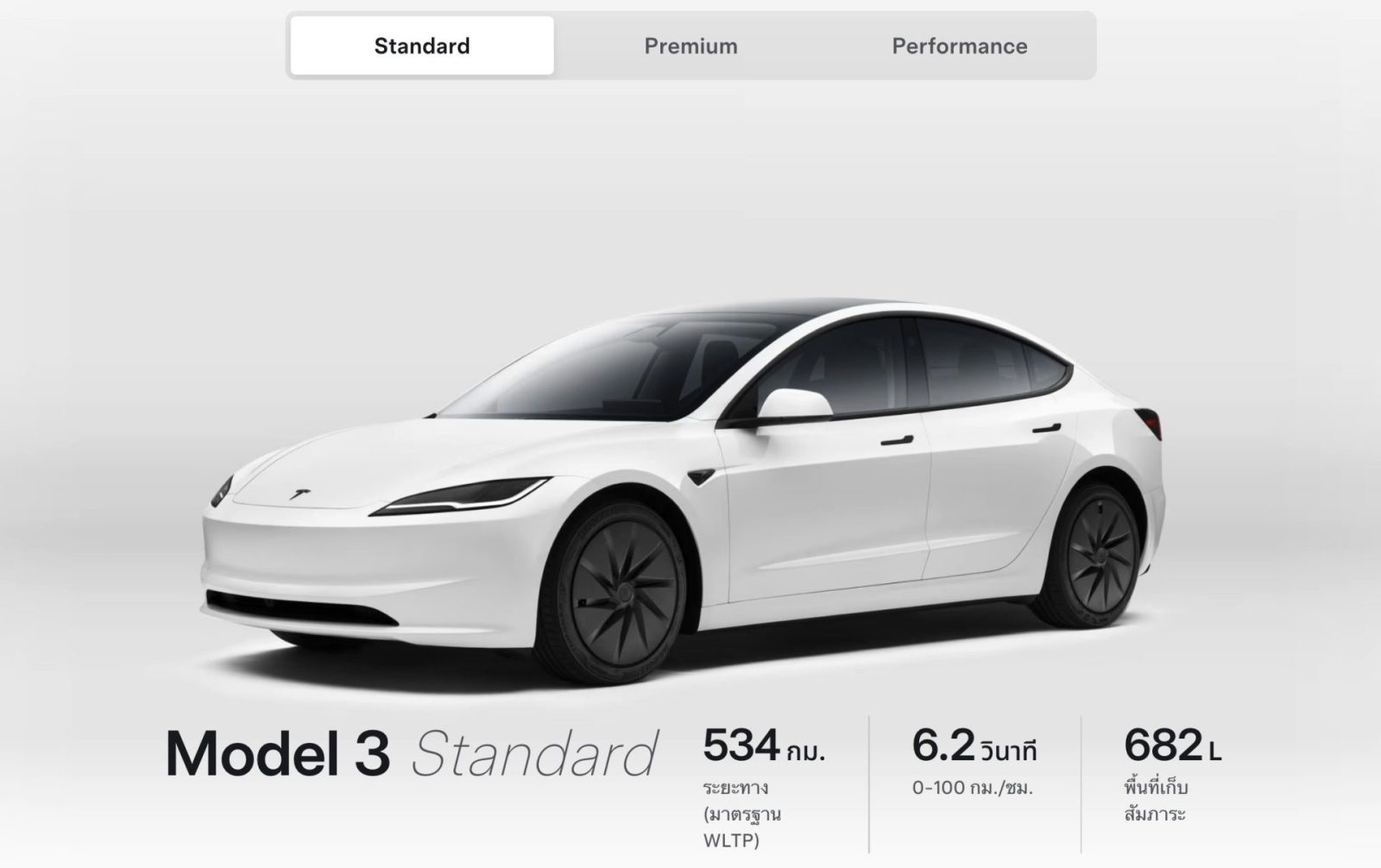 โดย Tesla Model 3 Standard จะมาพร้อมกับระบบขับเคลื่อนล้อหลัง (RWD) ที่ทำระยะทางวิ่งสูงสุด 534 กิโลเมตร (มาตรฐาน WLTP) พร้อมอัตราเร่ง 0-100 กม./ชม ภายใน 6.2 วินาที กับความเร็วสูงสุด 201 กม./ชม. ในขณะที่รองรับการชาร์จ รองรับ Supercharger สูงสุด 175 kW