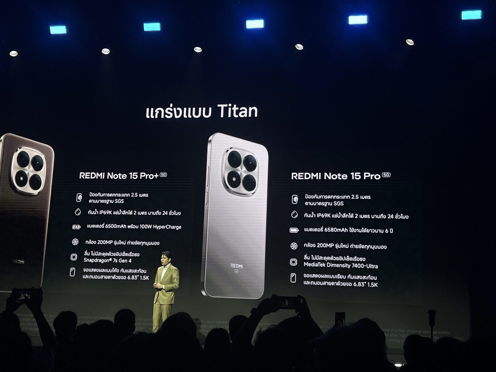 สำหรับ REDMI Note 15 Series ทั้งคู่เป็นแบตเตอรี่ซิลิคอน-คาร์บอน แต่สิ่งที่ต่างกันคือขนาดของแบตเตอรี่ โดย REDMI Note 15 Pro ความจุแบตเตอรี่อยู่ที่ 6,580 mAh ชาร์จไว 45W ส่วน REDMI Note 15 Pro+ ความจุแบตเตอรี่อยู่ที่ 6,500 mAh ชารจ์ไว 100 W รองรับการชาร์จแบบย้อนกลับด้วยสาย 22.5 W