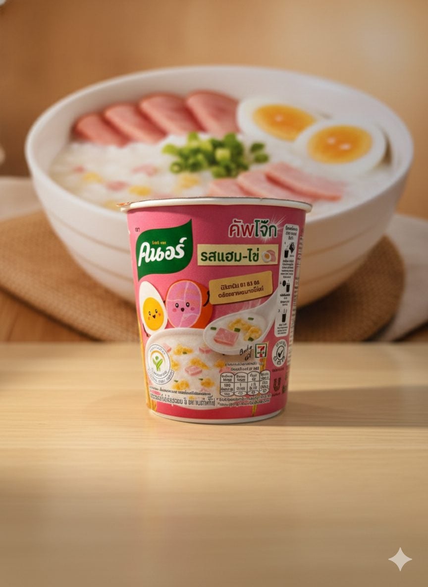2. พื้นหลังเป็นภาพที่สื่อถึงวัตถุดิบสอดคล้องกับสินค้า ภาพที่แนบให้เป็นโจ๊กคัพ