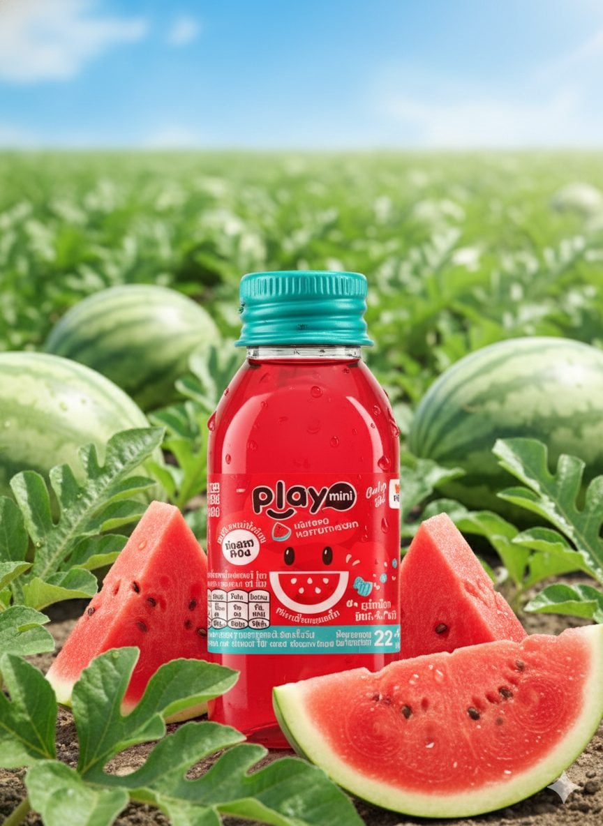 2. พื้นหลังเป็นวิวที่เข้ากับสินค้าและมีแตงโม ภาพที่แนบให้เป็นลูกอม
