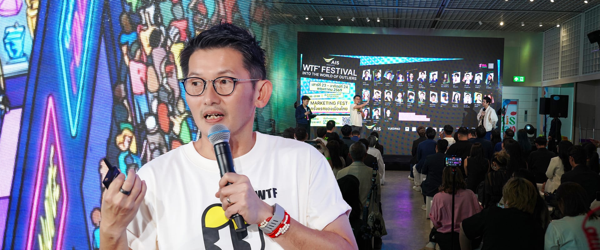 โจ้ ธนา ได้เอ่ยถึงเหตุผลที่จะทำให้งาน AIS PRESENTS WTF Festival 2026: Into the World of Outliers นี้จะมันกว่าครั้งไหน ๆ ว่า “งานนี้เกิดจากการรวบรวมเหล่า Outliers หรือนักธุรกิจรุ่นใหม่ที่เดินนอกขนบ มาแชร์ประสบการณ์หฤโหดก่อนจะสำเร็จเป็นแบรนด์พันล้าน งานนี้จึงไม่ใช่แค่การ PR หรือสัมมนาทั่วไป แต่เป็นพื้นที่ที่สร้างมาเพื่อให้น้อง ๆ ได้รับเครื่องมือและวิธีคิดเพื่อไปสร้างอนาคตของตัวเองจริง ๆ ครับ”