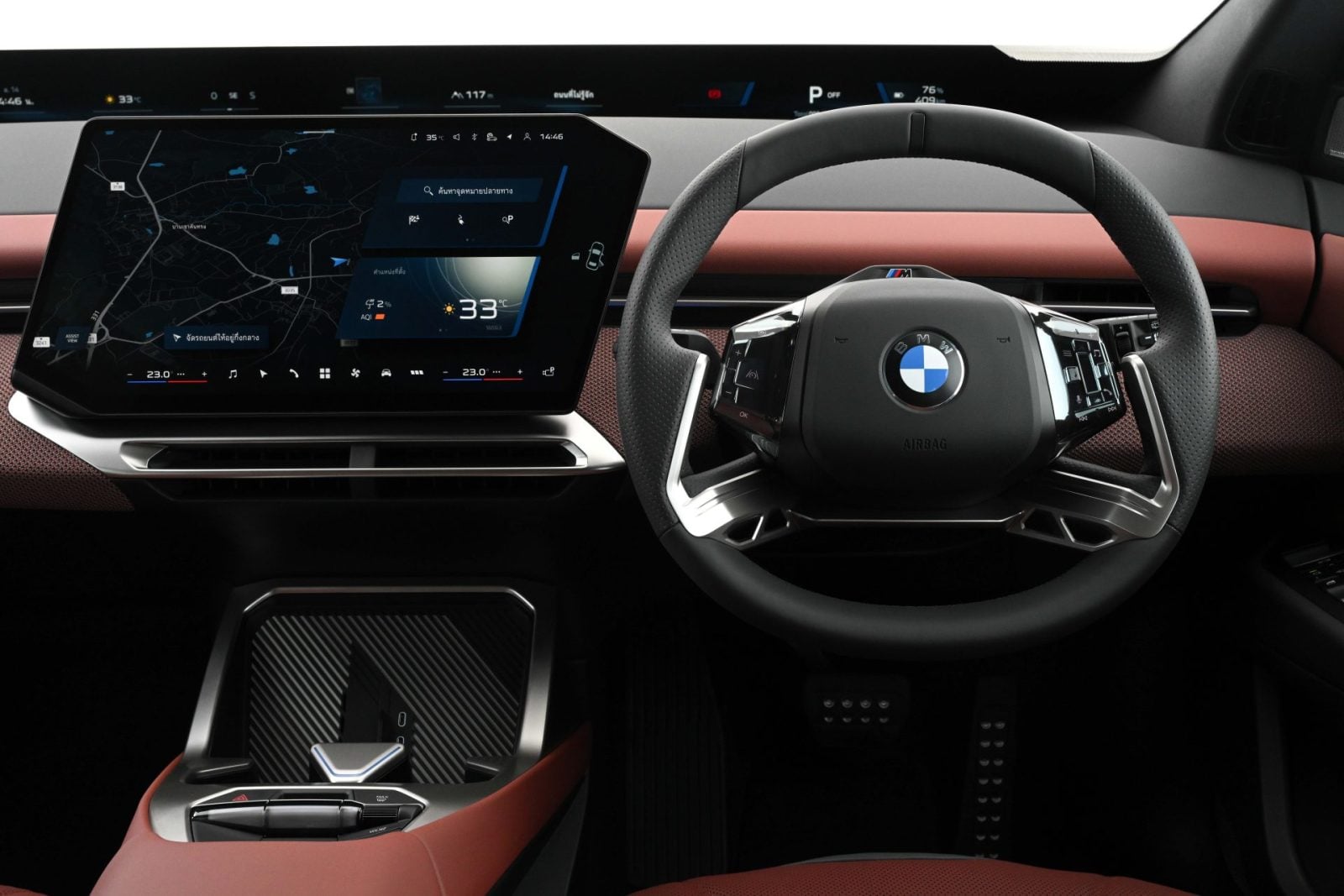 ส่วนสถาปัตยกรรมภายใน BMW ได้ดีไซน์เพื่อสร้างการปฏิสัมพันธ์ระหว่างคนกับรถผ่านระบบ BMW Panoramic iDrive บนระบบปฏิบัติการ BMW Operating System X ตามคอนเซปต์ Hands on the Wheel. Eyes on the Road. อย่าง BMW Panoramic Vision ที่ข้อมูลสำคัญจะแสดงบนกระจกหน้าแบบเต็มความกว้าง (Windshield wide) เพื่อให้ผู้ขับไม่ต้องละสายตาจากถนน 3D Head-Up Display แสดงเส้นทางเป็นภาพ 3 มิติเหนือระดับสายตา Center Display จอแสดงผลกลางแบบ Matrix Backlight ที่ยกตัวออกมาให้ใช้งานง่าย พร้อมวิดเจ็ต QuickSelect ที่เข้าถึงฟังก์ชันหลักได้ทันทีโดยไม่ต้องเข้าเมนูหลายชั้น