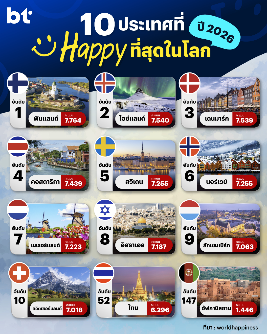 10 อันดับประเทศที่มีความสุขที่สุดในโลกปี 2026