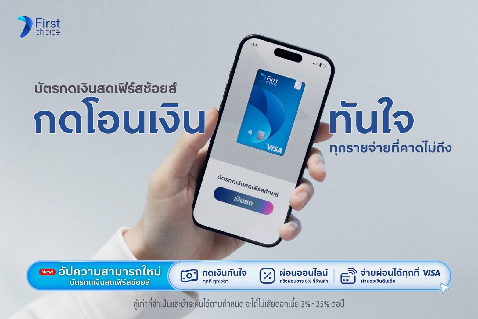 - สมัครง่าย: ผ่านแอปพลิเคชัน UCHOOSE, เว็บไซต์ First Choice หรือสาขาทั่วประเทศ ทราบผลภายใน 30 นาที