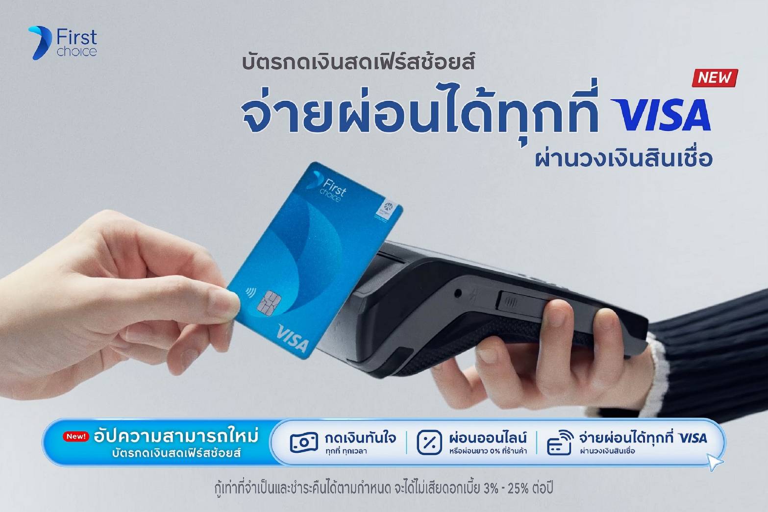 บัตรกดเงินสดเฟิร์สช้อยส์โฉมใหม่นี้ จึงไม่ได้เป็นเพียงแค่บัตรพลาสติกหรือตัวเลขในแอปพลิเคชัน แต่มันคือ “ความสบายใจ” ที่พกติดตัวไปได้ทุกที่ ไม่ว่าพรุ่งนี้จะเจอกับปัญหาที่ไม่คาดคิดรูปแบบไหนก็ตาม