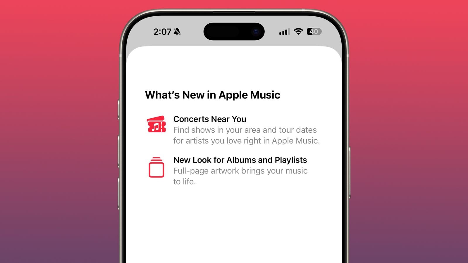นอกจากนี้ใน Apple Music ยังมีฟีเจอร์ “คอนเสิร์ตใกล้เรา” ที่จะช่วยค้นหาวันจัดทัวร์คอนเสิร์ตของศิลปินที่ชื่นชอบที่อยู่ใกล้ ๆ โดย Apple ได้ร่วมมือกับบริษัทต่างๆ เช่น Ticketmaster เพื่อให้ข้อมูลคอนเสิร์ตในพื้นที่