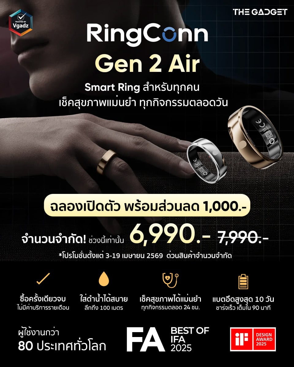 วีแกดซ์ (Vgadz) เปิดตัว “RingConn Gen 2 Air” แหวนอัจฉริยะรุ่นล่าสุดที่สร้างมาตรฐานใหม่ให้วงการ ภายใต้คอนเซปต์ “Smart Ring for Everyone” โดดเด่นด้วยดีไซน์ที่เน้นความบางเบาและการใช้งานที่คุ้มค่าในระยะยาว