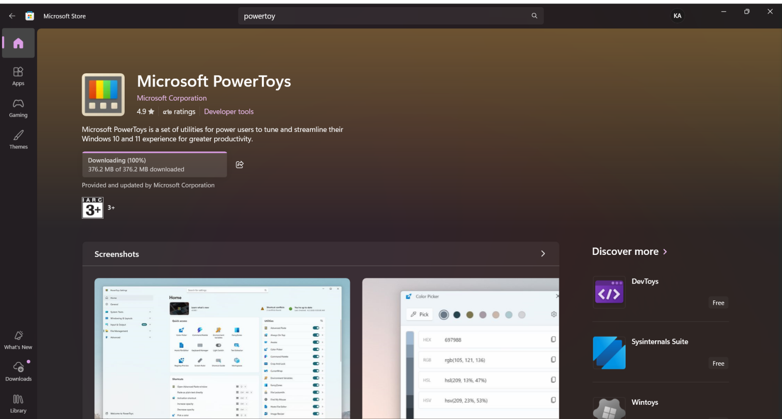 อย่างแรกที่เราต้องมีคือโปรแกรม Microsoft PowerToys ซึ่งเราสามารถดาวน์โหลด และติดตั้งได้จาก Microsoft Store ที่ให้ใช้ตัวนี้เพราะมันง่ายที่สุด และเป็นโปรแกรมของ Microsoft เองที่ครบเครื่องมาก (เรียกว่ามีสากเบือยันเรือรบ)
