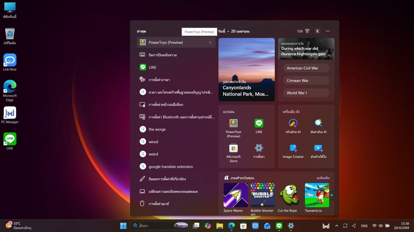 จากนั้นเปิดโปรแกรม Microsoft PowerToys ขึ้นมา ถ้าใครหามไม่เจอก็กดปุ่ม Win + S แล้วค้นหาจากชื่อได้เลย โดยชื่อจะเขียนว่า PowerToys (Preview)