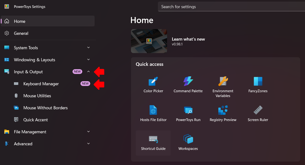 เมื่อเปิดไปจะเห็นการตั้งค่ายุบยับมาก ๆ เราไม่ต้องสนใจ ให้มองที่ด้านซ้ายมือ ให้ “กดเลือกหัวข้อ Input & Output” และตามด้วยหัวข้อ Keyboard Manager