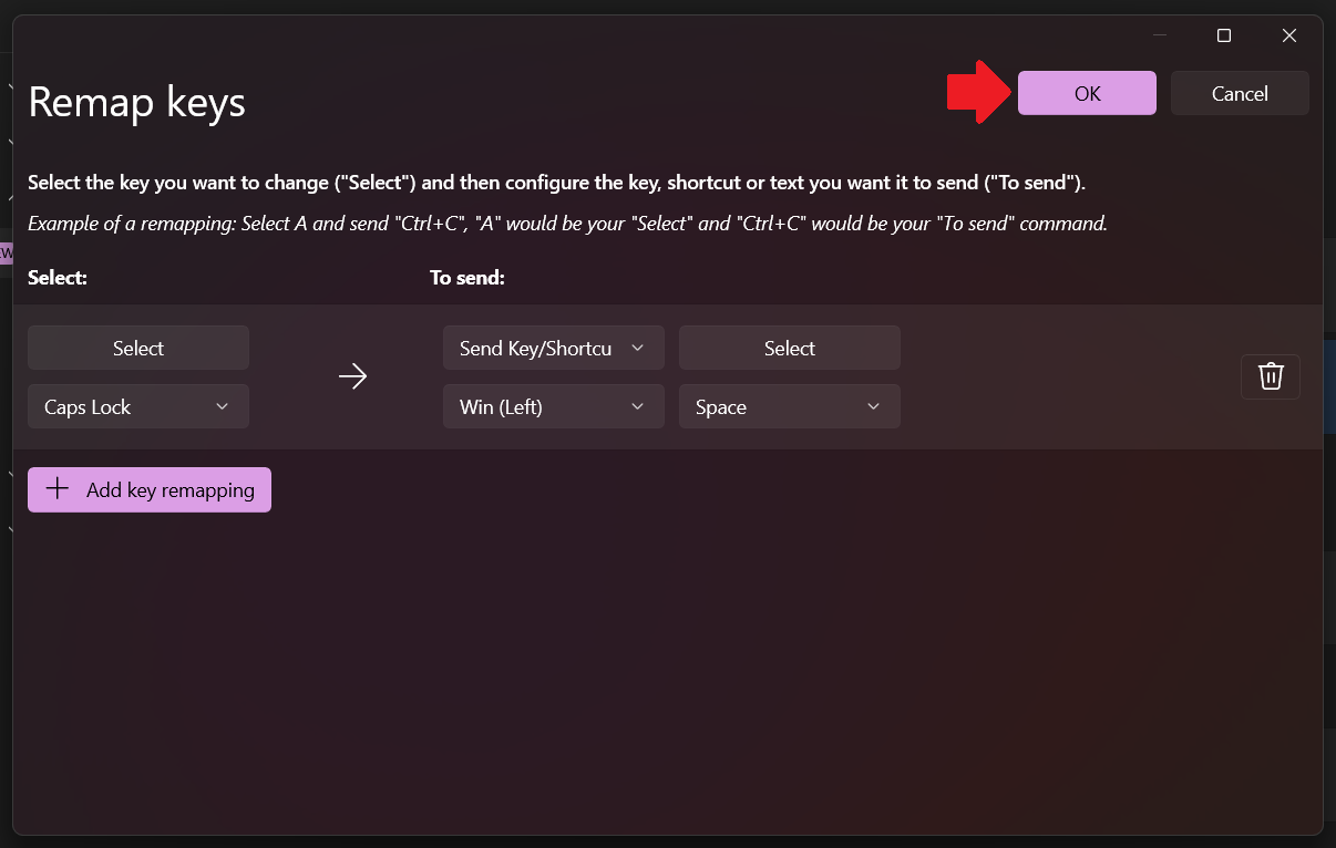 นอกจากตั้งปุ่ม Caps Lock เป็นปุ่มเปลี่ยนภาษาได้แล้วเนี่ย เรายังสามารถกดปุ่ม Alt (นิ้วโป้ง) แทนปุ่ม Ctrl (นิ้วก้อย) ได้ด้วยนะครับ ทำให้ให้รูปแบบการกดเหมือนกับการกดปุ่ม ⌘ (Cmd) ด้วยนิ้วโป้ง เหมือน macOS เลยครับ วิธีการทำเหมือนกับการเปลี่ยนภาษาเลย แค่ฝั่งซ้ายให้เราตั้งเป็น Alt ส่วนฝั่งขวา (To Send:) ให้ตั้งเป็น Ctrl