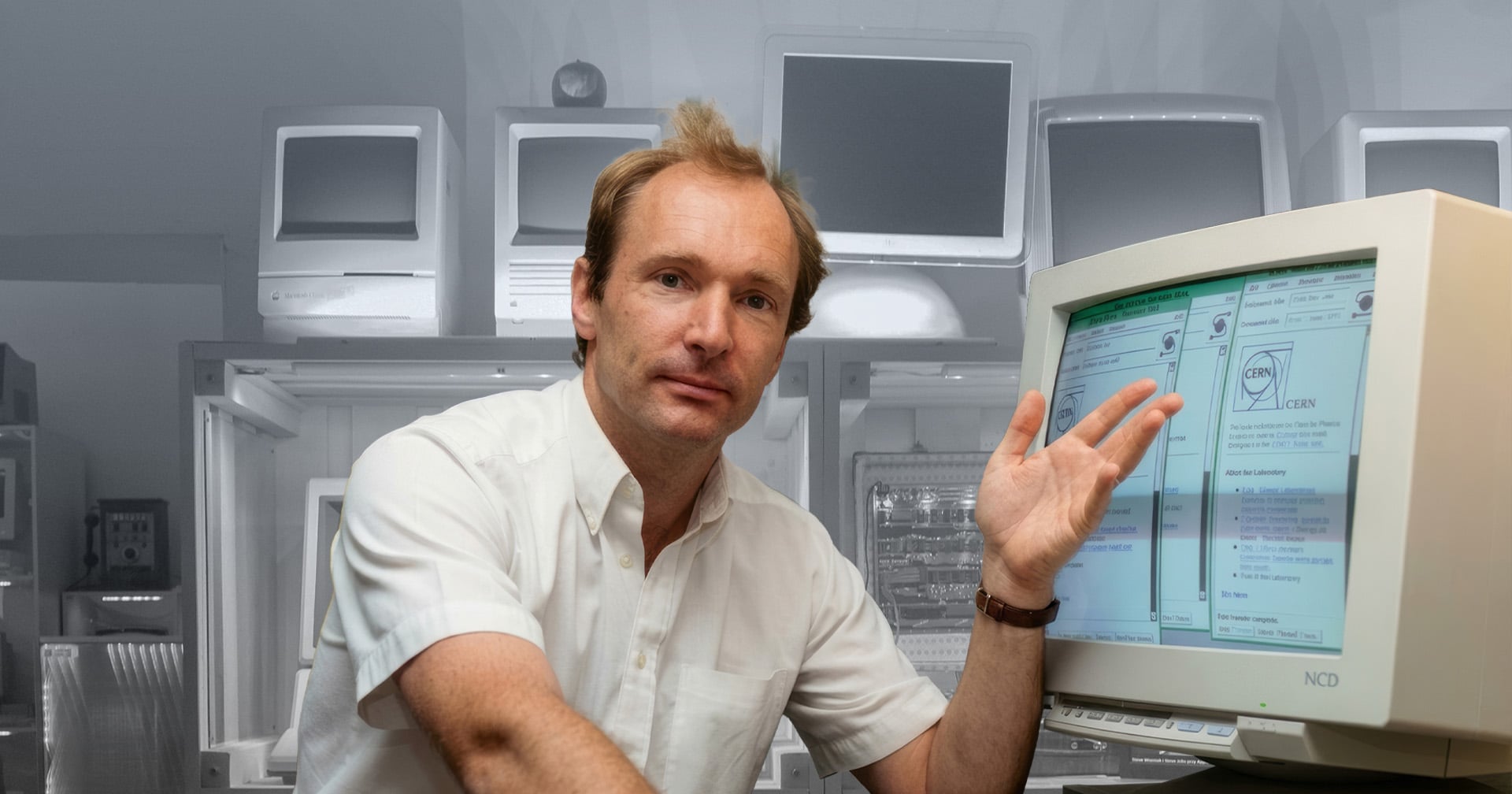 ในปี 1980 ขณะที่ เบอร์เนอร์ส-ลี ทำงานเป็นวิศวกรซอฟต์แวร์แบบสัญญาจ้างอยู่ที่ CERN (องค์การวิจัยนิวเคลียร์ยุโรป) เขาเผชิญปัญหาใหญ่คือ ‘ข้อมูลกระจัดกระจาย’ เนื่องจากนักวิทยาศาสตร์จากทั่วโลกต่างใช้คอมพิวเตอร์และระบบปฏิบัติการที่แตกต่างกัน ทำให้การแลกเปลี่ยนผลงานวิจัยเป็นไปได้ยาก
