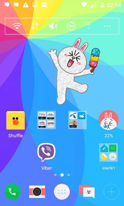 ชุดโปรแกรมภายในตัว dtac Phone Joey Jet 2 นั้นปรับปรุงไม่เยอะจากตัว Android 5.1 มาตรฐานนะครับ หน้าโฮมหลักที่ใช้นั้นคล้ายๆ กับ Google Now Launcher ที่มือถือตระกูล Nexus ใช้อยู่ไม่น้อย แต่ถ้าไม่ชอบในความเรียบง่ายของมัน Joey Jet 2 ก็มี LINE Launcher ติดมากับเครื่องเลย ให้เปลี่ยนรูปแบบหน้าโฮมให้มุงมิ้งถูกใจ มีตัวการ์ตูนจาก LINE มาแปะอยู่บนหน้าโฮมก็ทำได้