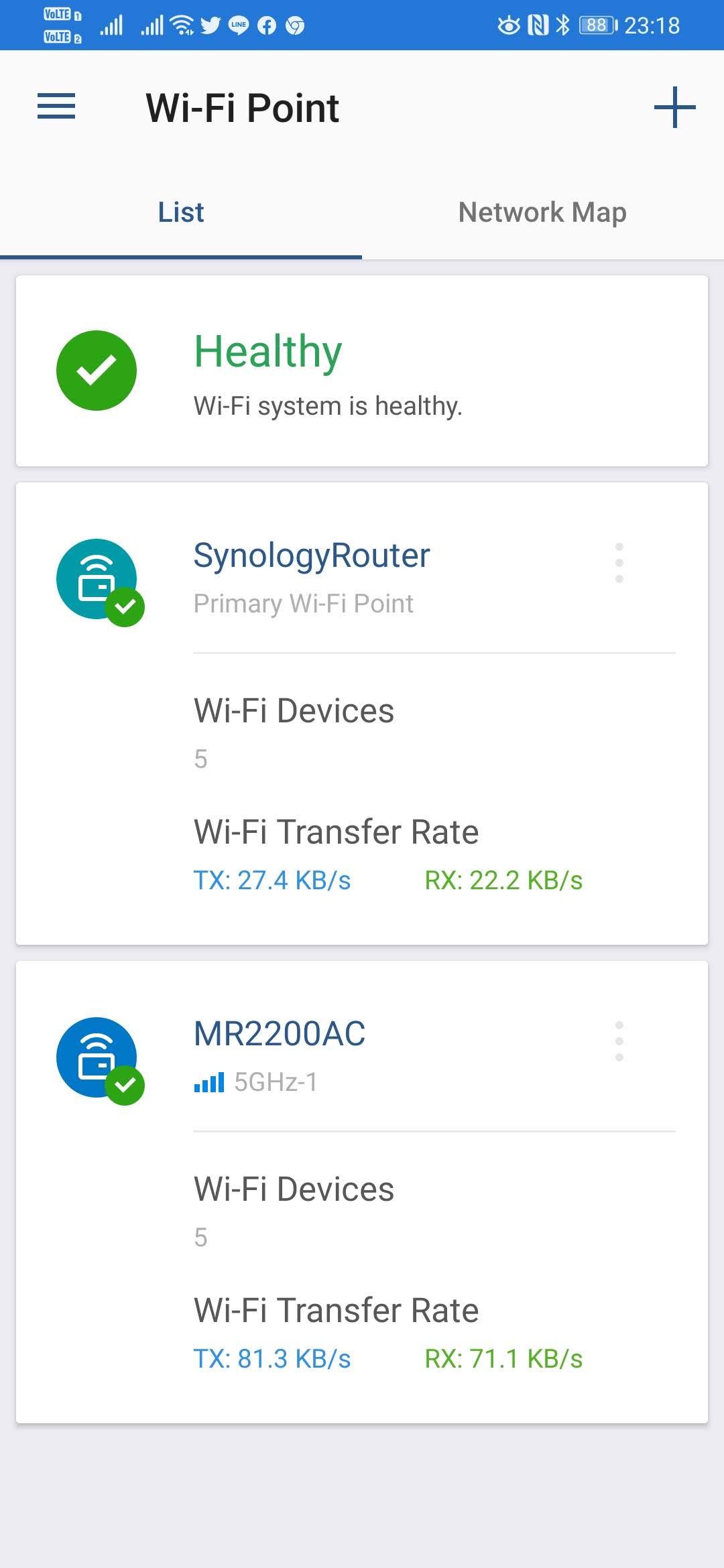 Synology MR2200ac จึงเหมาะสำหรับใช้ในบ้านหรือคอนโดหลังเล็ก ๆ ครับ คอนโดระดับ 1 ห้องนอนนี่ใช้ MR2200ac ตัวเดียวก็ครอบคลุมพื้นที่ได้สบาย ๆ ส่วนถ้ามีหลายห้อง หลายชั้นก็สามารถซื้อ MR2200ac เพิ่มเพื่อวางในจุดต่าง ๆ แบบ Mesh WiFi ได้ โดยถ้าเชื่อมต่อระหว่างจุดแบบไร้สาย จะสามารถวางได้ 7 ตัว (ตัวหลัก 1 และตัวลูก 6 ตัว) ส่วนถ้าเชื่อมระหว่างจุดด้วยสาย LAN จะสามารถวางได้ 13 ตัว (ตัวหลัก 1 และตัวลูก 12 ตัว) ครับ