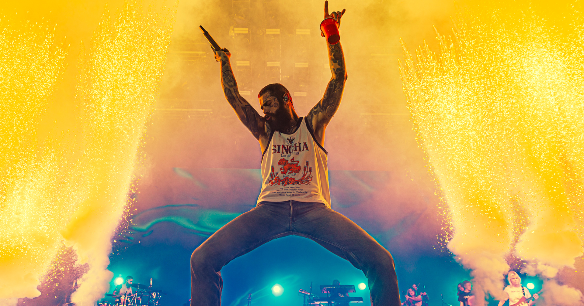 เวลาประมาณ 21.00 น. วงเครื่องสายควอเต็ตขึ้นบรรเลงอินโทร ก่อนที่ Post Malone จะปรากฏตัวในเสื้อกล้ามเบียร์สิงห์ พร้อมกับเพลงจังหวะเร้า ๆ อย่าง “Better Now” และ “Wow.” ก่อนจะกล่าวทักทายแฟน ๆ ชาวไทยครั้งแรกแบบได้ใจว่า