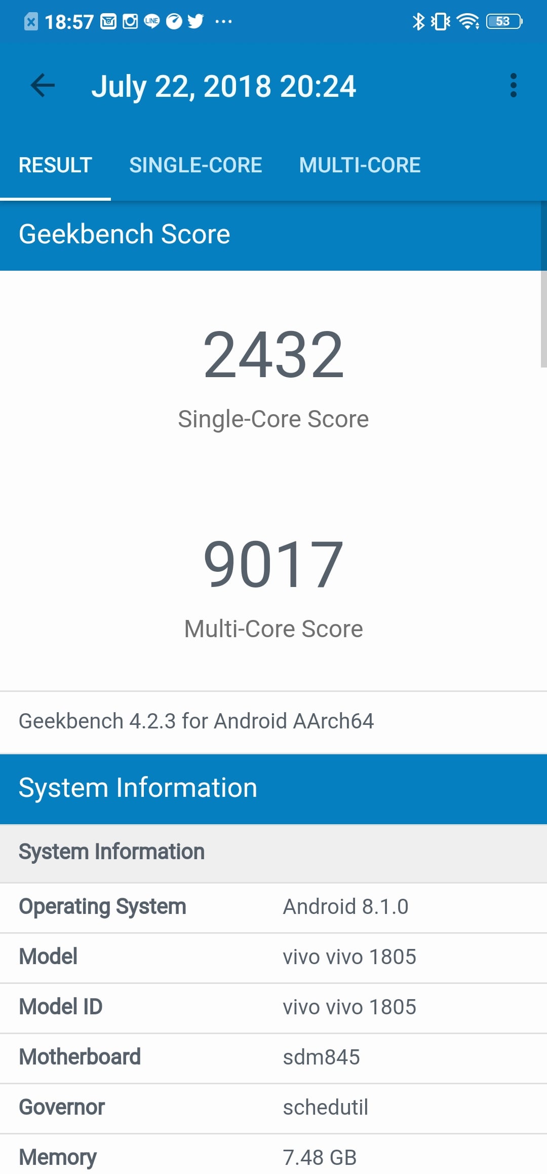 - ซึ่งทดสอบด้วย Geekbench 4.2 ก็ทำคะแนนไปโหดมาก ทำคะแนน Multicore ไป 9000 ที่สุดในตาราง Geekbench Browser ตอนนี้ (ที่ยังไม่มี Asus ROG Phone อยู่ในตารางตอนนี้) คือแซง Galaxy S9+ ที่ใช้ Snapdragon 845 เบอร์เดียวกันไปพันคะแนน