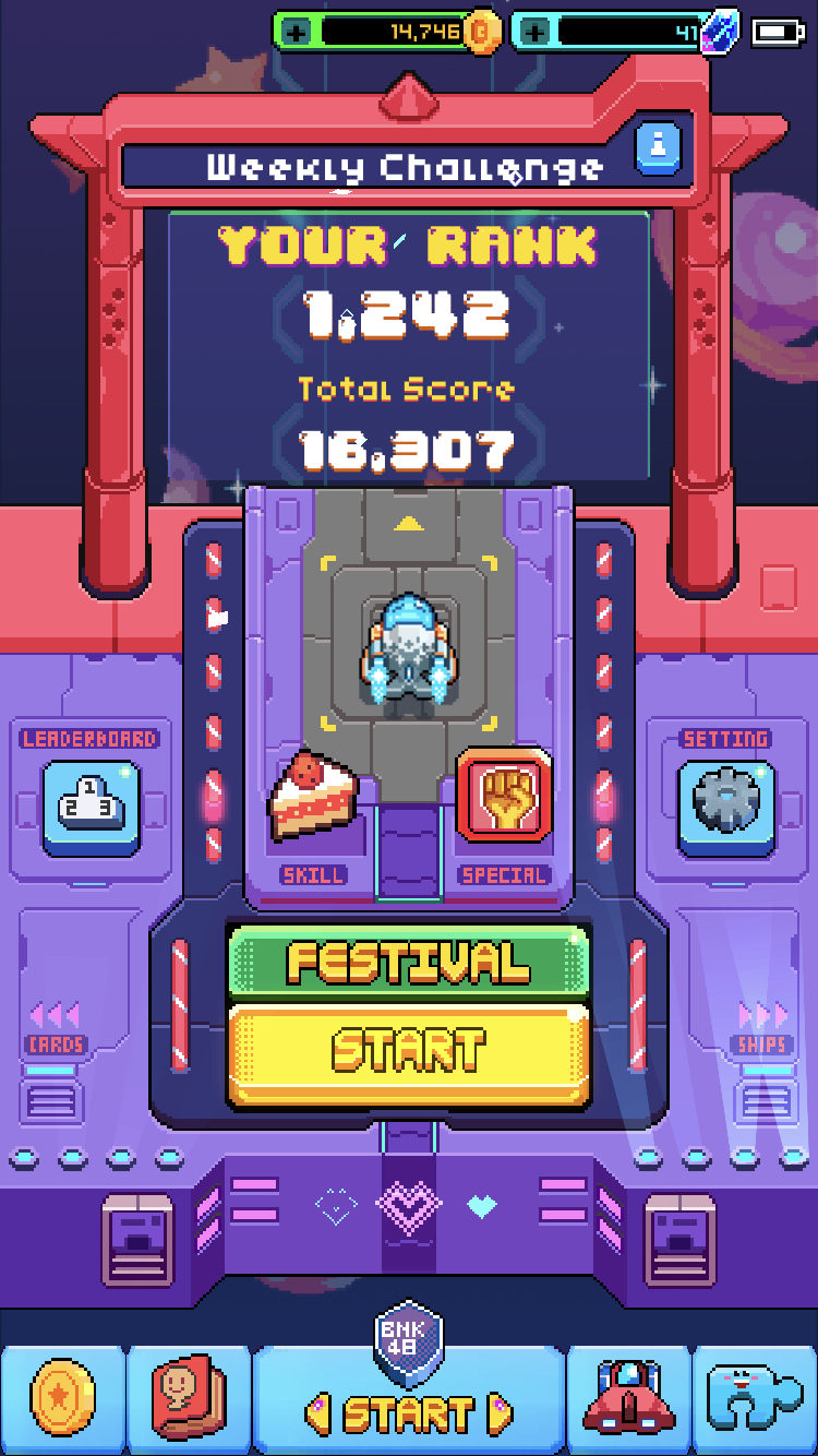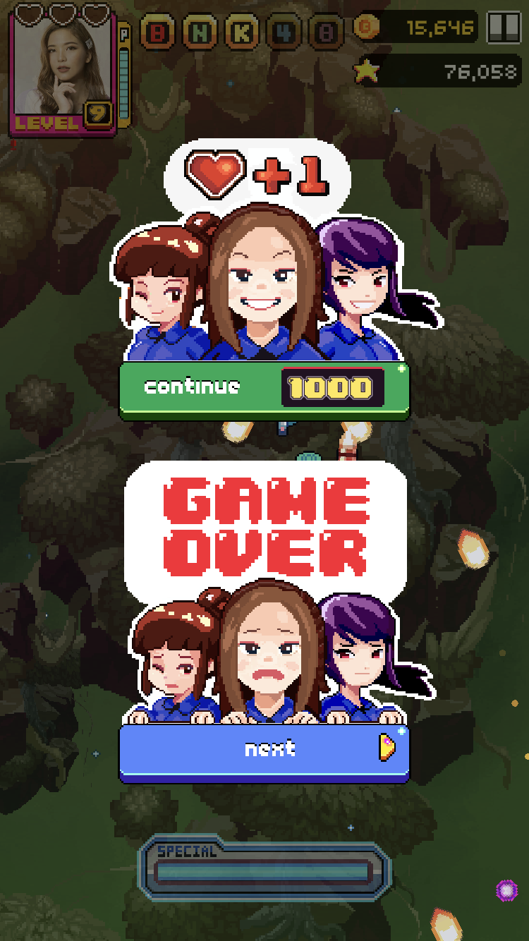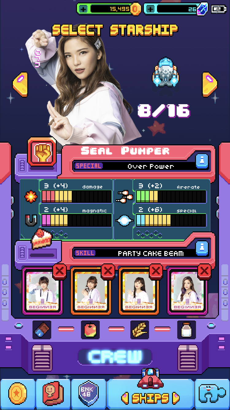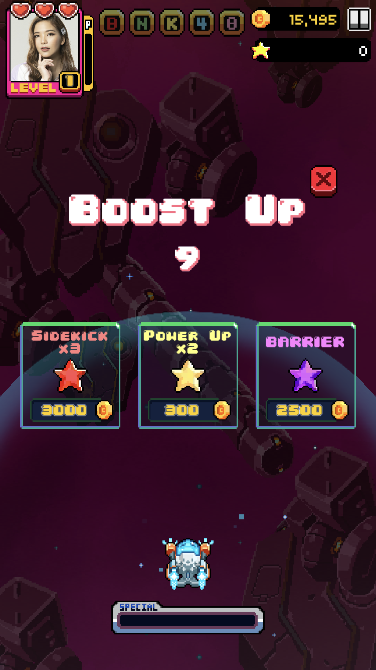ด้วยความโด่งดังของ BNK48 และธีมของเพลง BNK Festival ทำให้เกิดเกมยานยิงสไตล์ย้อนยุค 8 บิต ที่ให้น้องอยู่ในยานแบบต่างๆ ซึ่งในเวอร์ชั่นแรกที่ออกมาจะมีเพียง 3 แบบ คือ ของเฌอปราง ปัญ และวี ในตอนนี้ได้มีเพิ่มขึ้นอีก 7 แบบ และเปลี่ยนธีมของเพลง Beginner ซึ่งเป็นเพลงใหม่จากการเลือกตั้งเมื่อช่วงต้นปีที่ผ่านมา ทำให้ในตอนนี้มียานใหม่ๆ ที่ให้เราได้เล่นกันมากขึ้น