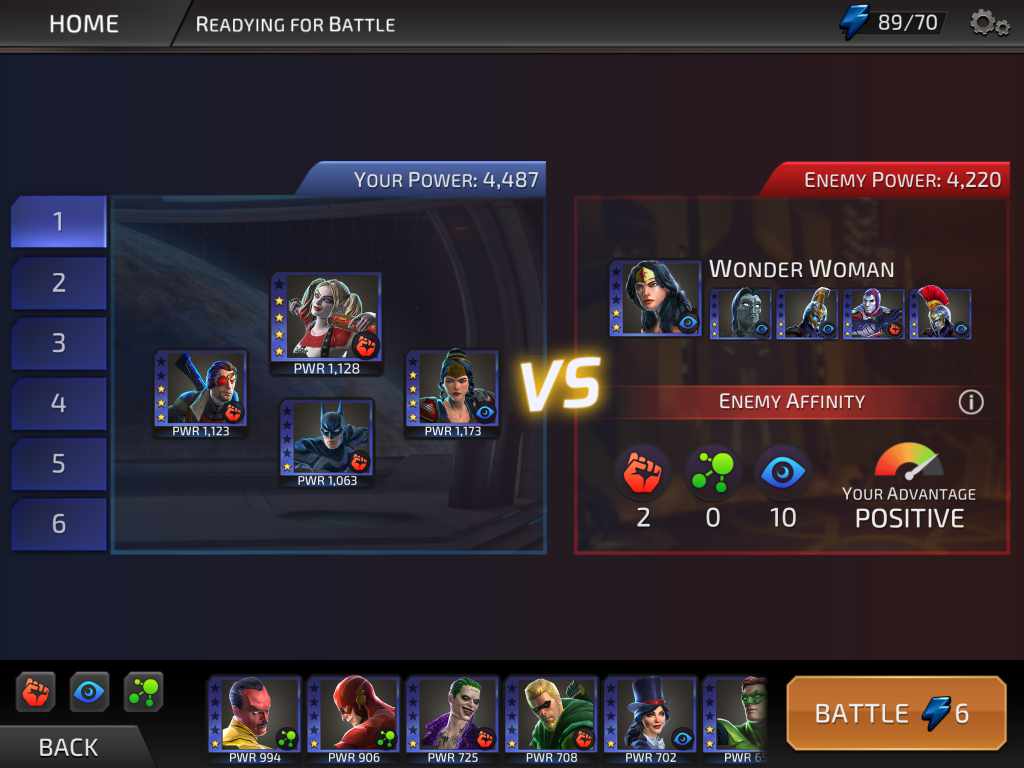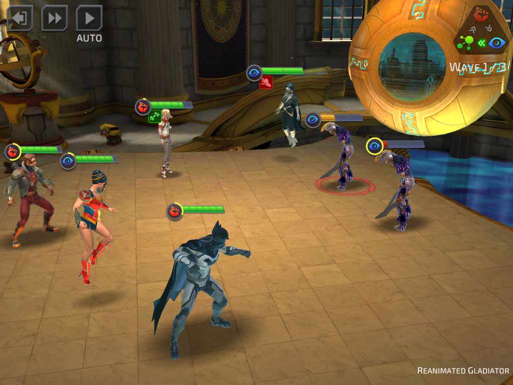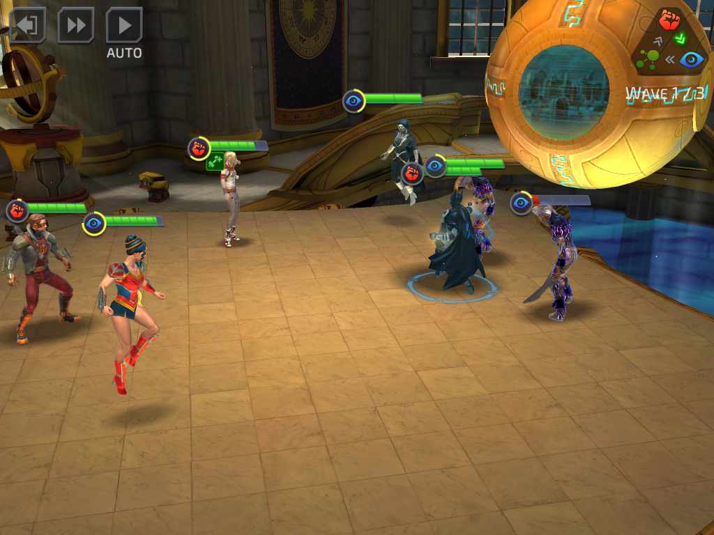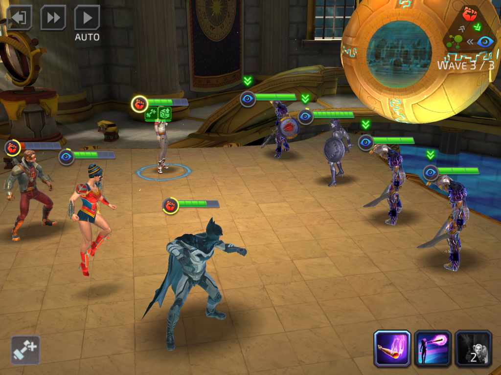 ซึ่งแต่ละตัวละครก็มีอยู่หลายชุด เช่น Wonder Woman มีทั้ง Champion of the Amazons หรือ Princess of Themyscira ซึ่งความสามารถก็จะมีแตกต่างกันไป
