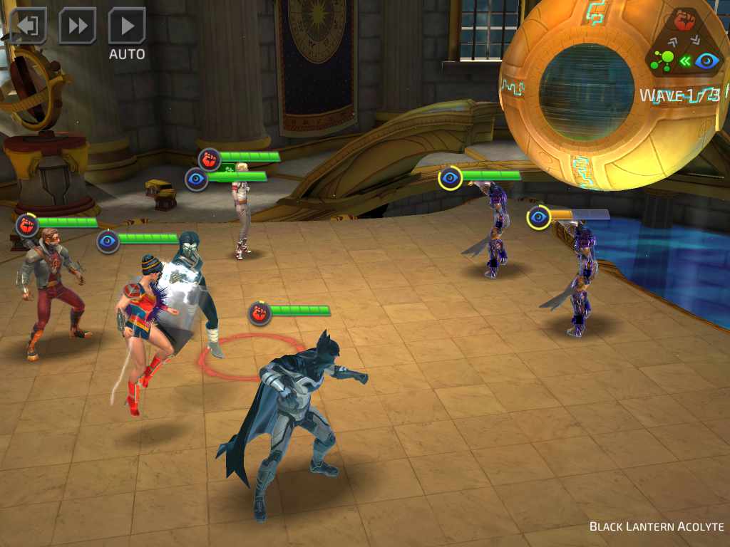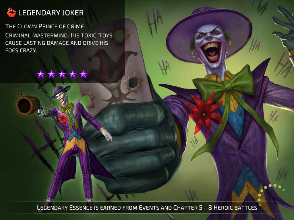 - Strength (ไอคอนมือสีแดง) สายนี้จะเน้นในเรื่องพละกำลัง ใช้ในการต่อสู้ได้ดี เช่น Deadshot, Harley Quinn, Batman, Joker, Green Arrow และอื่นๆ