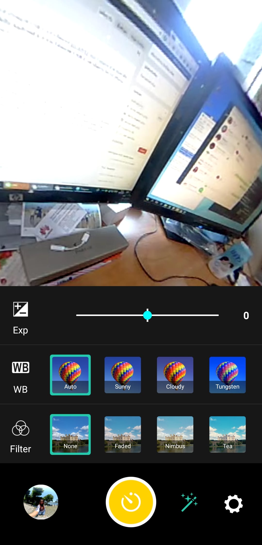 ระหว่างถ่ายรูป 360 องศาเราสามารถหมุนภาพ ซูมภาพตัวอย่างที่แสดงเข้าออกได้ด้วยนะครับ สามารถตั้งนับถอยหลังก่อนถ่ายได้ด้วย เพื่อให้เราจัดองค์ประกอบภาพได้ง่ายขึ้น นอกจากนี้ยังสามารถปรับความสว่างก่อนถ่าย (EV) และใส่ฟิลเตอร์ให้ภาพก็ได้ และถ้าเราไม่ต้องการโลโก้ Huawei 360 (ที่อยู่บริเวณที่ตัวกล้องอยู่ในภาพ) ก็สามารถปิดใน Settings ได้ครับ ไม่ต้องกังวลว่าจะมีลายน้ำหัวเว่ยทุกรูป