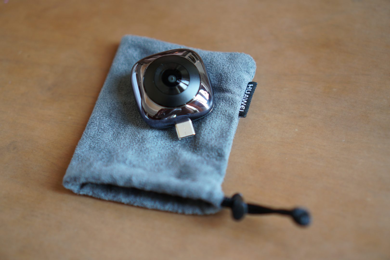 Huawei EnVizion 360 นั้นมีขนาดเล็กมากนะครับ หนักแค่ 30 กรัม ขนาดพอๆ กับชุดเลนส์ Fish Eye ที่หลายคนใช้แปะมือถือกันนั้นแหละ เล็กกว่ารุ่นพี่ในวงการอย่าง Ricoh Theta แล้วก็เล็กกว่าคู่แข่งอย่าง Insta360 Air อีกหน่อย ซึ่งความเล็กของมันก็เป็นข้อดีที่พกง่ายมาก สามารถใส่ถุงนิ่มๆ ที่ Huawei แถมมาให้พกติดตัวไปไหนก็ได้ ไม่ลำบากชีวิต!