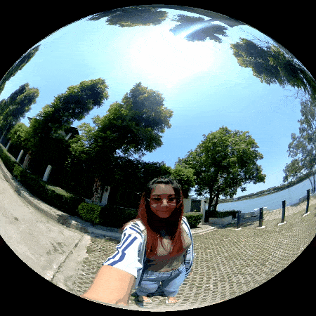 ส่วนถ้าเราอยากแชร์แค่ภาพนิ่งที่ปรับมุมสวยๆ อาจจะปรับภาพในแบบ Little Planet ที่เหมือนเรายืนอยู่บนโลกกลมใบเล็กๆ หรือเลือกให้เห็นมุมมองที่ต้องการ ก็สามารถลากบีบมุมภาพที่ต้องการได้ในแอป แล้วกดปุ่ม Screen Shot เพื่อบันทึกภาพนั้นออกมาแชร์ได้เลย หรือจะเซฟออกมาเป็น GIF ก็ได้ โดยถ้าเป็นภาพนิ่ง ไฟล์ GIF ก็จะค่อยๆ หมุนเปลี่ยนมุม ส่วนถ้าเป็นวิดีโอ ไฟล์ GIF ก็จะเลือกส่วนใดส่วนหนึ่งของวิดีโอออกมาเล่นครับ
