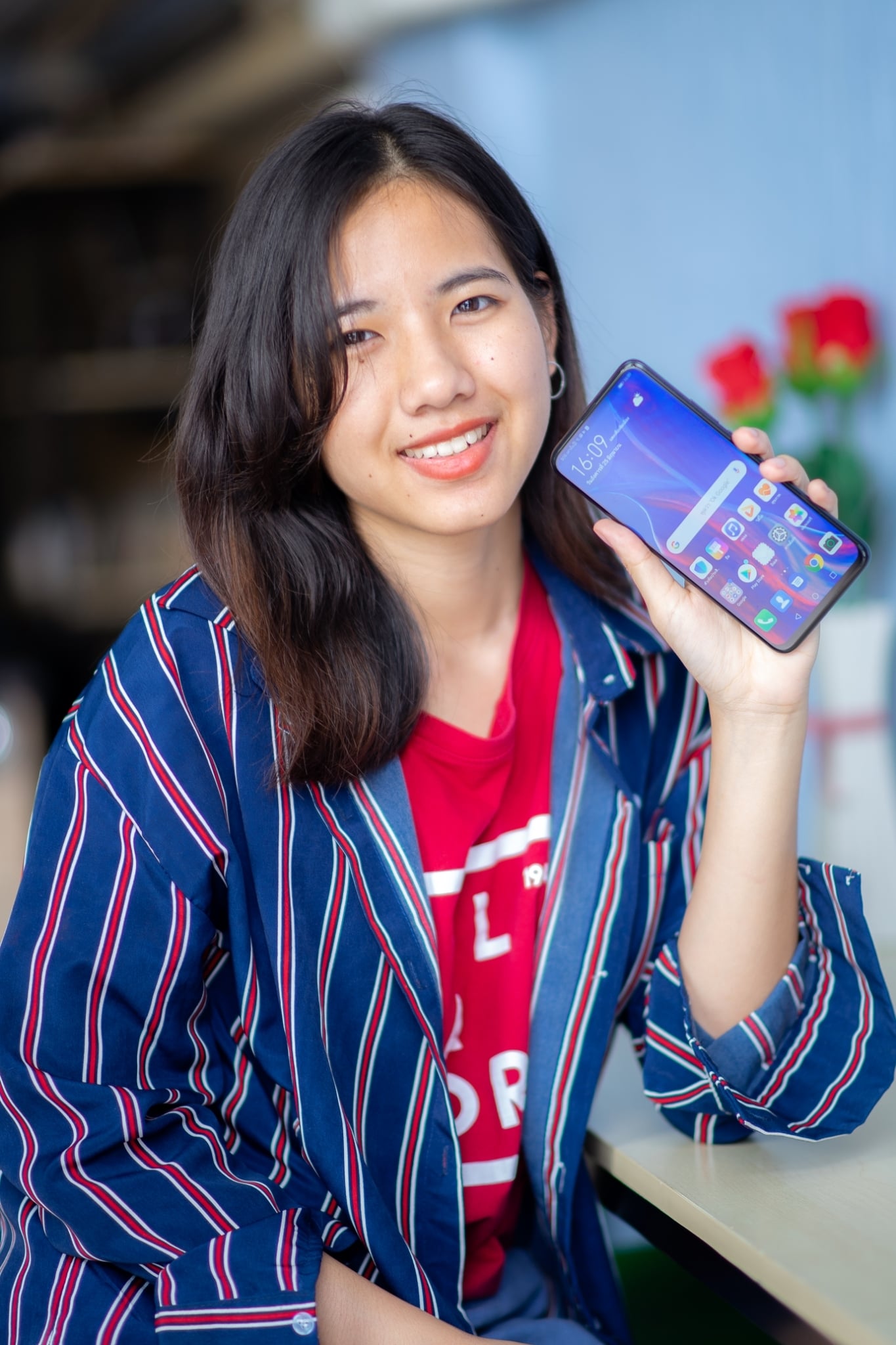 กล้อง pop-up selfie camera 16 ล้านพิกเซล f2.2 ที่รองรับน้ำหนักได้สูงถึง 15 กิโลกรัม และใช้งานได้เกินแสนครั้ง และป้องกันตัวเองโดยการหุบกล้องทันทีที่หลุดจากมืออีกด้วย มีระบบ AI Selfie ถ่ายรูปได้อย่างสวยงาม สามารถปรับระดับการแต่งสวยได้ถึง 10 ระดับ