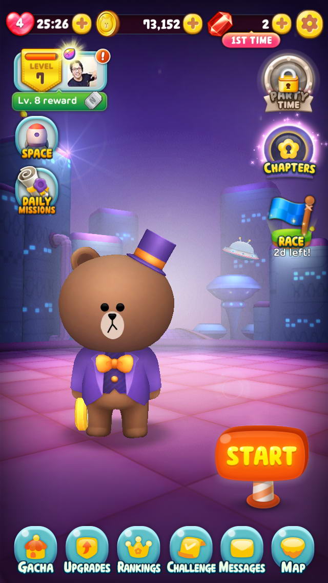 เมื่อเรามีเลเวลสูงขึ้น สามารถปลดล็อกช่องตัวละคร ซึ่งได้สูงสุด 3 ตัว เราสามารถอัพเกรดตัวละคร สุ่มกาช่าจับตัวละครดีๆ ได้ ตัวละครที่เราสามารถเลือกเล่นได้ นอกจาก Brown แล้วยังมี Cony Jessica และ Leonard และมีโหมด chapters บังคับให้เราเล่นตัวละครตามภารกิจที่กำหนดเพื่อผ่านไปในแต่ละด่านใน Maps ตัวเกมยังสามารถแข่งกับเพื่อนใน LINE ได้