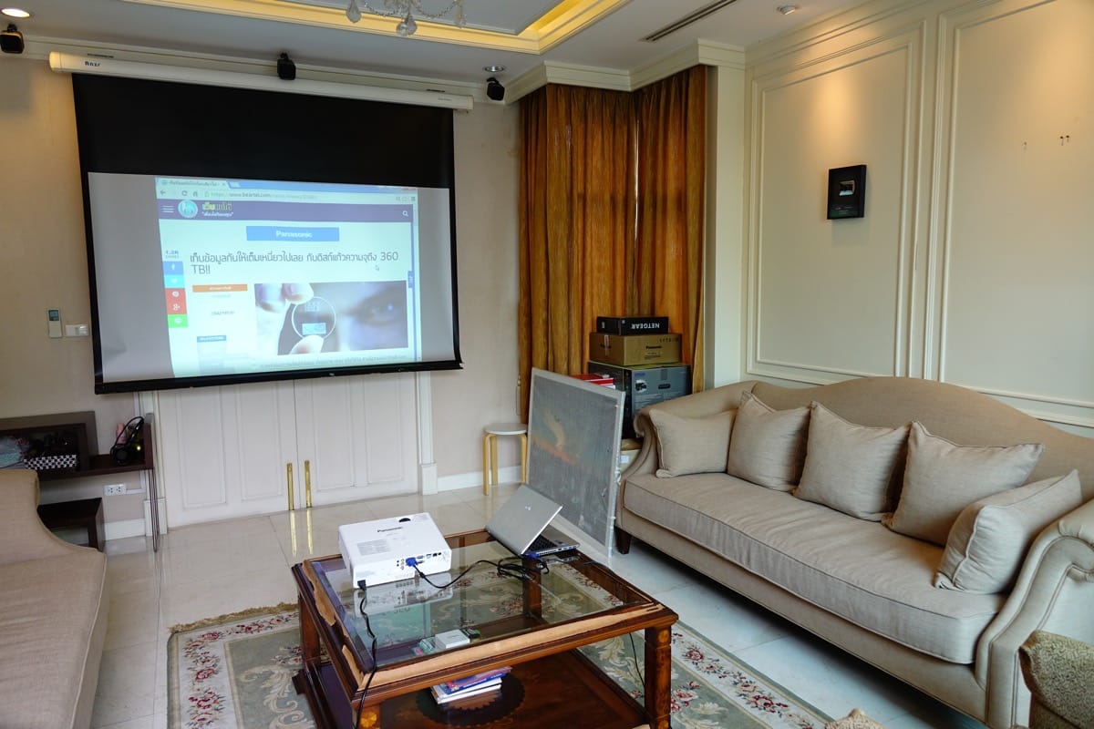 ตามสเปกแล้ว Panasonic PT-LB412 Series ให้ความสว่างของภาพได้สูงสุด 4,100 lm และให้สัดส่วน Contrast ที่ 12,000:1 ถามว่ามันสว่างและชัดขนาดไหน ก็สว่างพอที่จะฉายภาพในห้องที่เปิดไฟทั้งห้องและเปิดให้แสงแดดเข้า แล้วยังชัดเจนอยู่แบบนี้ยังไงล่ะครับ