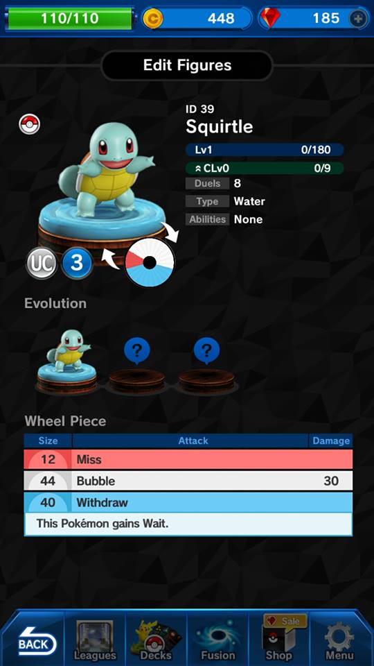 ถ้าอ่านเเล้วยังไม่เข้าใจ ขอยกตัวอย่างเป็น เซนิกาเมะ มีอยู่ 2 ท่าคือ Bubble โจมตี 30 เเละ Withdraw พวกท่าพิเศษจะไม่มีค่าโจมตี เเต่จะมีการใช้สีของธาตุของตัวนั่นๆ ส่วน Miss จะทำให้เราไม่สามารถทำอะไรคู่ต่อสู้ได้ ตัวเลขด้านหน้าจะเป็นตัวบอกลักษณะความกว้างของฐานวงกลม ที่จะมีช่องอยู่ด้านในวงกลม 96 ช่อง ยิ่งท่าไหนมีความกว้างมาก ก็มีโอกาสที่จะได้ใช้ท่านั้นสูง อย่างที่บอกไปช่วงต้นพวกท่าพิเศษพวกนี้ จะทำให้ Figure ของคู่ต่อสู้ติดสถานะ เช่น หยุดเดิน 1 เทิร์น หรือ สลับตำเเหน่งที่ยืน เป็นต้น