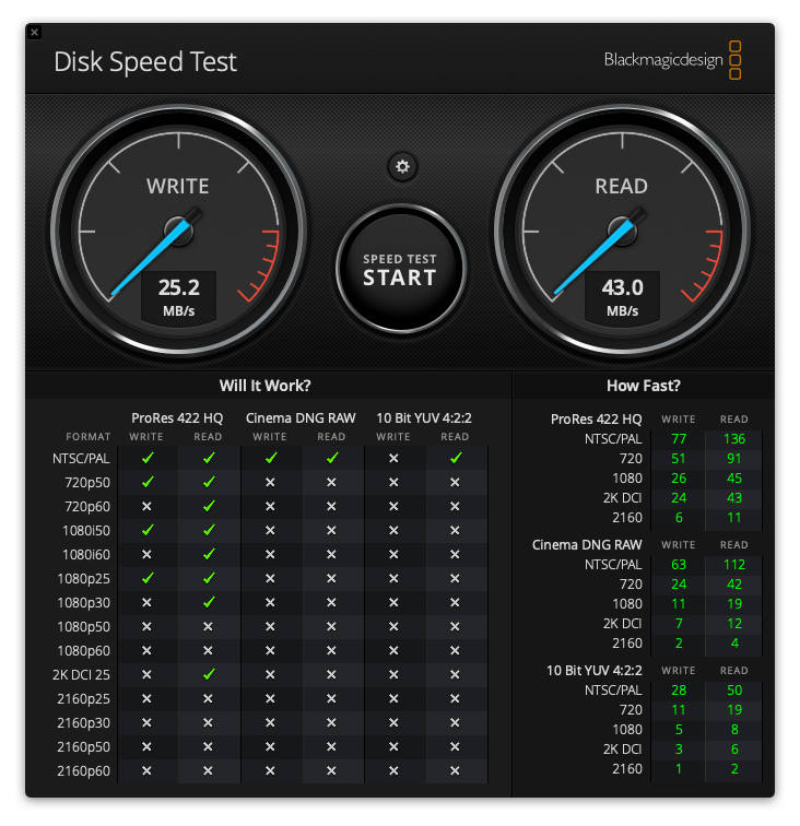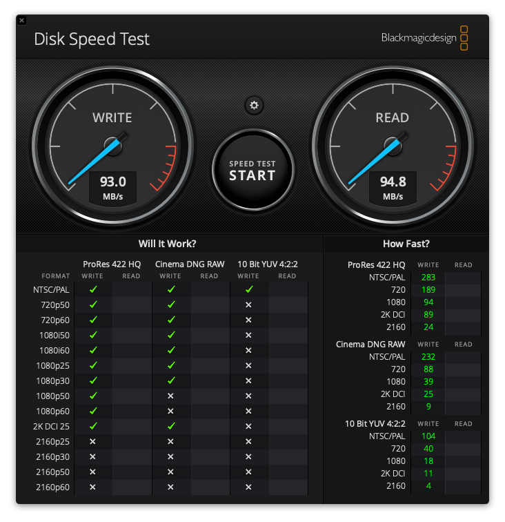 ส่วนการทดสอบประสิทธิภาพนั้นเราทดสอบผ่าน Macbook 12 ที่รองรับการเชื่อมต่อผ่านคลื่น 5 GHz ที่ความเร็วสูงสุด 1.3 Gbit/s นะครับ โดยใช้โปรแกรม Blackmagic Disk Speed Test เพื่อทดสอบการอ่าน-เขียนไฟล์เข้าไปที่ Synology NAS DS218+ ซึ่งเชื่อมต่อผ่าน Gigabit LAN กับตัว Synology RT2600ac อยู่ เพื่อทดสอบประสิทธิการรับ-ส่งข้อมูลภายในวง LAN เดียวกัน ซึ่งจะใช้ประสิทธิภาพของ Wifi สูงกว่าการเทสต์กับอินเทอร์เน็ตภายนอกครับ