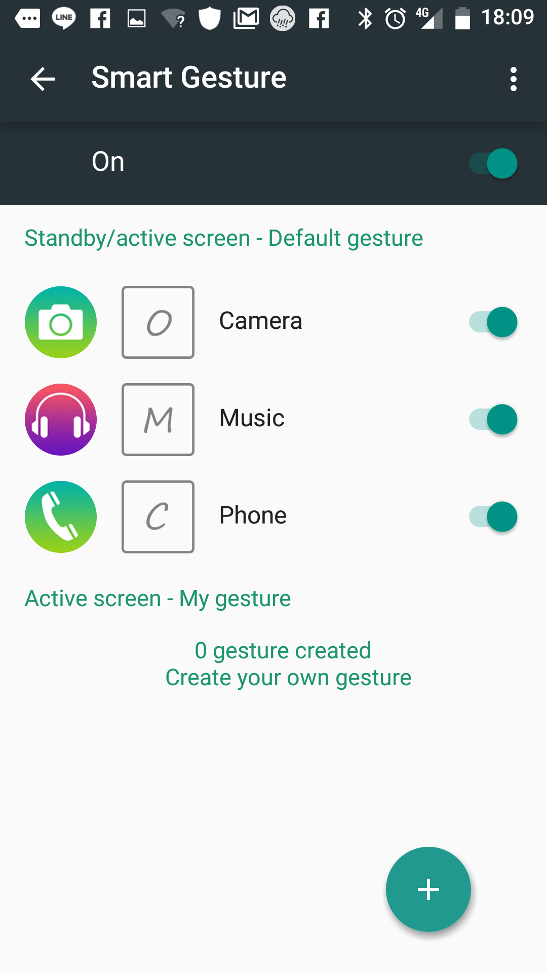 - Smart Gesture เมื่อลากนิ้วจากมุมซ้ายบนของจอ จะมีแผ่นให้วาดคำสั่งลงไป เช่นวาด O เพื่อเปิดกล้อง