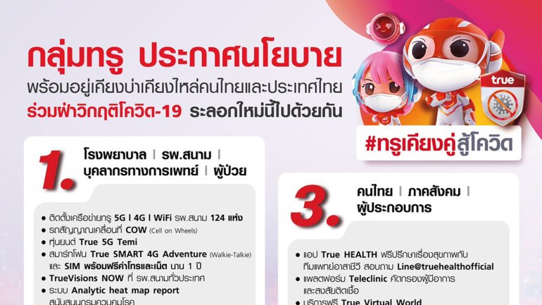 กลุ่มทรู ประกาศ 4 นโยบาย พร้อมอยู่เคียงข้างคนไทยร่วมฝ่าวิกฤติโควิด-19 ระลอกใหม่นี้ไปด้วยกัน