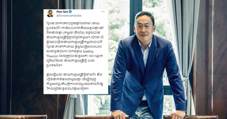 ฮุน เซน หัวหน้าพรรคประชาชนกัมพูชา (CPP) และอดีตนายกรัฐมนตรีกัมพูชา ทวีตแสดงความยินดีกับนายทักษิณ ชินวัตร ที่เดินทางกลับถึงบ้านเกิด พร้อมแสดงความยินดีกับไทยที่มีนายกรัฐมนตรีคนใหม่ในวันเดียวกับกัมพูชาพนิตา สืบสมุทร | 874 days ago