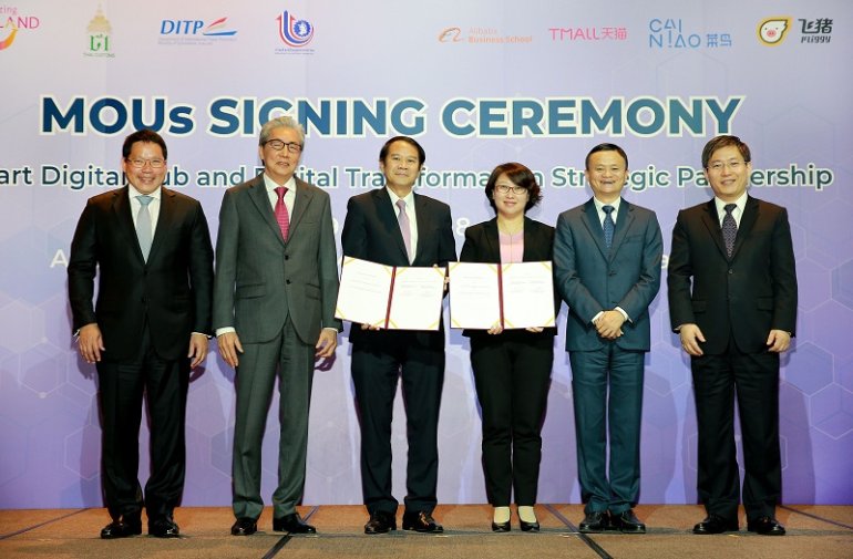 ดร.สมคิด จาตุศรีพิทักษ์ รองนายกรัฐมนตรี , ท่านลวี่ เจี้ยน เอกอัครราชทูตจีนประจำประเทศไทย และ นายแจ็ค หม่า ประธานกรรมการบริหารกลุ่มอาลีบาบา พร้อมด้วยรัฐมนตรีฝ่ายเศรษฐกิจของไทย ร่วมเป็นสักขีพยานในการลงนามบันทึกความเข้าใจระหว่างหน่วยงานภาครัฐต่าง ๆ ของ ไทยกับบริษัทในเครืออาลีบาบากรุ๊ป เพื่อส่งเสริมการลงทุนในพื้นที่ เขตเศรษฐกิจพิเศษภาคตะวันออก (EEC) และขับเคลื่อนการพัฒนาเศรษฐกิจดิจิทัลของไทยภายใต้ ยุทธศาสตร์ประเทศไทย 4.0 โดยมีความร่วมมือในหลากหลายมิติ อาทิ การส่งเสริม SMEs ทุกระดับเข้าสู่อีคอมเมิร์ซ การพัฒนาของดาวเด่นหรือ Talents ของไทยในด้านดิจิทัล การยกระดับระบบโลจิสติกส์โดยอาศัยเทคโนโลยีชั้นนำของอาลีบาบา และการส่งเสริมการท่องเที่ยวผ่านระบบดิจิทัล รัฐบาลไทย แสดงความตั้งใจที่จะร่วมมือกับ อาลีบาบา โดยทำหนังสือแสดงเจตจำนงร่วมกันเป็นครั้งแรก ในปี พ.ศ. 2559 และพิธีการในวันนี้เป็นผลสืบเนื่องจากการประกาศความร่วมมือดังกล่าวที่แสดงให้เห็นถึงความสัมพันธ์ที่ดีและความร่วมมืออย่างต่อเนื่อง ก่อให้เกิดผลงานที่เป็นรูปธรรมระหว่างหน่วยงานภาครัฐของไทยและบริษัทในเครืออาลีบาบากรุ๊ปที่มีเป้าหมายร่วมกันในการพัฒนาศักยภาพของผู้ประกอบการไทย และผลักดันให้สามารถเข้าถึงตลาดใหม่ในเวทีโลกผ่านนวัตกรรมด้านดิจิทัลต่าง ๆ ได้ ดร.สมคิด จาตุศรีพิทักษ์ รองนายกรัฐมนตรี เปิดเผยว่า “อาลีบาบา ได้ทำการศึกษาข้อมูลเปรียบเทียบในระดับภูมิภาคและตัดสินใจที่จะลงทุนสร้าง ดิจิทัลฮับ (Smart Digital Hub) ในพื้นที่เขตเศรษฐกิจภาคตะวันออกหรืออีอีซี เนื่องจากมีความเชื่อมั่นในนโยบายประเทศไทย 4.0 และอนาคตที่สดใสของเศรษฐกิจไทย โดยดิจิทัลฮับที่จะสร้างขึ้นนี้…salinee tintumrong | 2824 days ago
