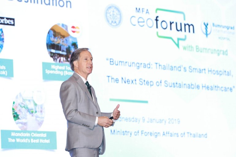 โรงพยาบาลบำรุงราษฎร์ ได้กล่าวในงานสัมมนา “MFA CEO Forum with Bumrungrad” หัวข้อ “Thailand’s Smart Hospital : The Next Step of Sustainable Healthcare” จัดโดยกรมเศรษฐกิจระหว่างประเทศ กระทรวงการต่างประเทศ เพื่อแสดงวิสัยทัศน์ด้าน Smart Hospital และเพื่อยกระดับบทบาทของเอกชนไทยในเวทีเศรษฐกิจโลก โดยมีเอกอัครราชทูตต่างประเทศที่ประจำการในประเทศไทย ตลอดจนผู้บริหารในภาคธุรกิจชั้นนำเข้าร่วม โรงพยาบาลบำรุงราษฎร์ ได้รับความไว้วางใจและความเชื่อมั่นจากผู้ป่วย มุ่งมั่นในการพัฒนาองค์ประกอบ 4 ประการ (4 core pillars) ซึ่งถือเป็นหัวใจของคุณภาพการรักษา ประกอบด้วย คุณภาพและความปลอดภัย บำรุงราษฎร์เป็นโรงพยาบาลแห่งแรกในเอเชียที่ได้รับการรับรองมาตรฐาน JCI (Joint Commission International) ซึ่งเป็นมาตรฐานคุณภาพโรงพยาบาลระดับสากลจากสหรัฐอเมริกาและยังคงมุ่งเน้นในมาตรฐานระดับสากลอีกหลายมาตรฐาน การผนึกกำลังของสหสาขาวิชาชีพเพื่อผลลัพธ์เชิงบวก โรงพยาบาลฯ มีแนวคิดที่ใช้ประโยชน์จากจุดแข็งและความชำนาญการของบุคลากรในด้านต่าง ๆ โดยยึดผู้ป่วยเป็นศูนย์กลางเพื่อส่งมอบการรักษาพยาบาลที่ดีที่สุดเท่าที่จะเป็นไปได้ นวัตกรรมและเทคโนโลยี ด้วยเจตคติและจุดมุ่งหมายของโรงพยาบาลฯที่จะเป็นผู้บุกเบิกด้านนวัตกรรมและเทคโนโลยีขั้นสูงทำให้สามารถจับแนวโน้มใหม่ ๆ ในการดูแลรักษาสุขภาพได้ อีกทั้งโรงพยาบาลฯ ได้พัฒนาระบบเทคโนโลยีสารสนเทศสู่การเป็นโรงพยาบาลดิจิทัลอย่างสมบูรณ์ และ การบริบาลด้วยความเอื้ออาทร เป็นค่านิยมหลักประการหนึ่งของโรงพยาบาลบำรุงราษฎร์…salinee tintumrong | 2541 days ago