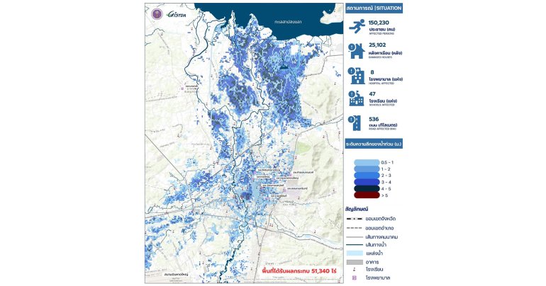 GISTDA (สำนักงานพัฒนาเทคโนโลยีอวกาศและภูมิสารสนเทศ) ได้เผยแพร่ผลการวิเคราะห์สถานการณ์น้ำท่วมขังในพื้นที่อำเภอหาดใหญ่ จังหวัดสงขลา ณ วันที่ 25 พ.ย. 2025 โดยใช้ข้อมูลจากดาวเทียม Sentinel-1A ของวันที่ 24 พ.ย. 2025 ร่วมกับเทคนิค HAND Model เพื่อประเมินความลึกของน้ำและสนับสนุนการปฏิบัติการช่วยเหลือประชาชน ระดับน้ำวิกฤตส่วนใหญ่อยู่ในระดับอันตรายสูง 2-3 เมตร ผลการวิเคราะห์ดังกล่าวชี้ให้เห็นถึงสถานการณ์ที่รุนแรงและเป็นวงกว้าง ดังนี้ GISTDA เน้นย้ำถึงความเร่งด่วนในการเข้าช่วยเหลือ เนื่องจากพื้นที่ส่วนใหญ่ของอำเภอหาดใหญ่มีระดับน้ำท่วมขังอยู่ในโซนสีน้ำเงินเข้ม (2 – 3 เมตร) ซึ่งเป็นระดับที่สูงมากและบ่งบอกถึงอันตรายต่อชีวิตและทรัพย์สิน ความเสียหายต่อโครงสร้างพื้นฐานและประชาชน ข้อมูลเชิงวิเคราะห์ของ GISTDA แสดงให้เห็นถึงผลกระทบต่อชีวิตความเป็นอยู่ของประชาชนอย่างรุนแรง GISTDA ได้ดำเนินการส่งต่อชุดข้อมูลเชิงวิเคราะห์ดังกล่าวให้กับหน่วยงานหลักที่รับผิดชอบการบริหารจัดการภัยพิบัติ เพื่อใช้เป็นฐานข้อมูลสำคัญในการตัดสินใจและปฏิบัติการช่วยเหลืออย่างเร่งด่วนที่สุด ช่องทางติดตามสถานการณ์น้ำท่วมขัง ประชาชนสามารถติดตามสถานการณ์น้ำท่วมขังอย่างต่อเนื่องและเป็นปัจจุบัน (Near Real-time) ได้ที่อมลวรรณ ศรัทธานนท์ | 48 days ago