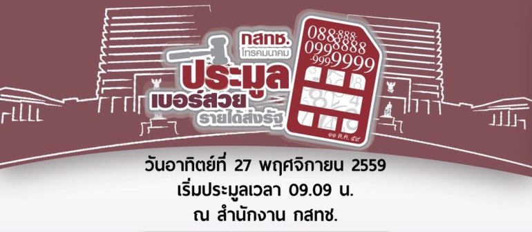 ไม่ควรพลาด !! กสทช. จัดประมูลสุดยอดเบอร์มือถือสวยขั้นสุด ครั้งแรกในไทย 27 พ.ย. นี้