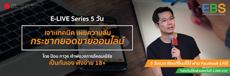 คุณภาวุธ พงษ์วิทยภานุ หรือที่เรารู้จักกันในนาม คุณป้อม ภาวุธ CEO กลุ่มบริษัท efrastructure Group , กรรมการผู้จัดการ และผู้ก่อตั้งเว็บไซต์ TARAD.com ได้เปิดคอร์สออนไลน์ครั้งแรก เป็นการสอนที่คุณป้อมบอกว่า "ตั้งใจที่จะถ่ายทอดความรู้ด้าน E-Commerce ที่มีแบบจัดเต็ม ไม่มีกั๊ก ในรูปแบบของการ LIVE ผ่านทาง Facebook ทั้งหมด 5 วัน ด้วยกัน เริ่มตั้ง วันที่ 17 - 21 ตุลาคม สด ๆ ในเวลา 19.00 - 20.30 น. (ใกล้จะถึงแล้วนะจ๊ะ!!) จองด่วน.! รับส่วนลดพิเศษ 1,500 บาท เพียงบอกรหัส : EBSPawoot สั่งจองได้ที่ Line@ : @taradebs ราคาเข้าเรียนตลอด 5 วัน 17 - 21 ตุลาคม 2559 คือ 5,500…20/06/2016