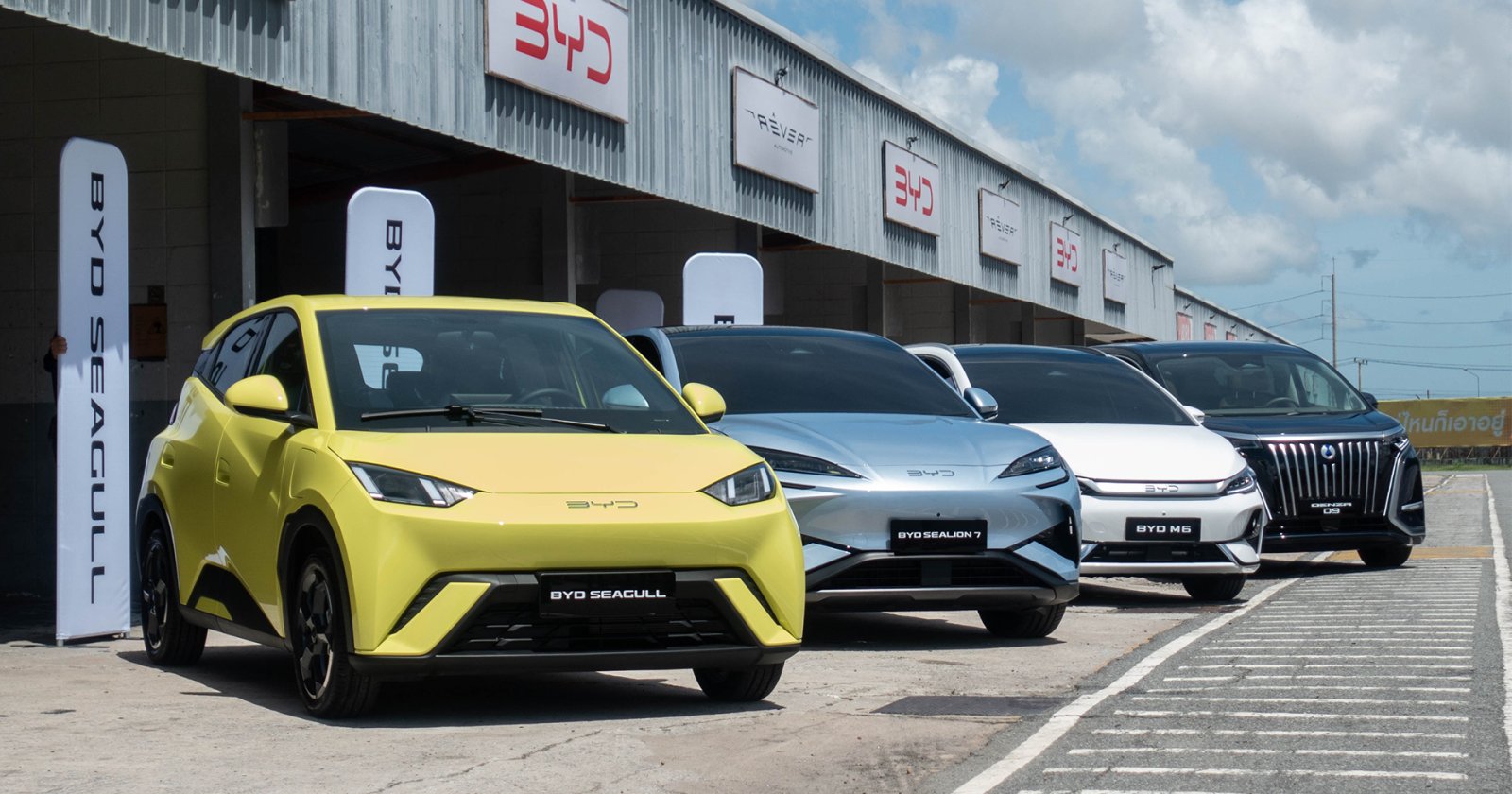 BYD จัดกิจกรรมทดสอบรถยนต์ไฟฟ้า 4 รุ่นใหม่ ที่ยังไม่ได้ทำตลาดในไทย แถมยังเป็นรถสเปกจีนพวงมาลัยซ้ายในบางรุ่นอีกด้วย 4 รุ่นนั้น ได้แก่ BYD Seagull น้องเล็กไซซ์มินิ สำหรับขับขี่ในเมือง, BYD M6 เอสยูวีมีให้เลือก 6-7 ที่นั่ง ใช้พื้นฐานเดียวกับ E6…