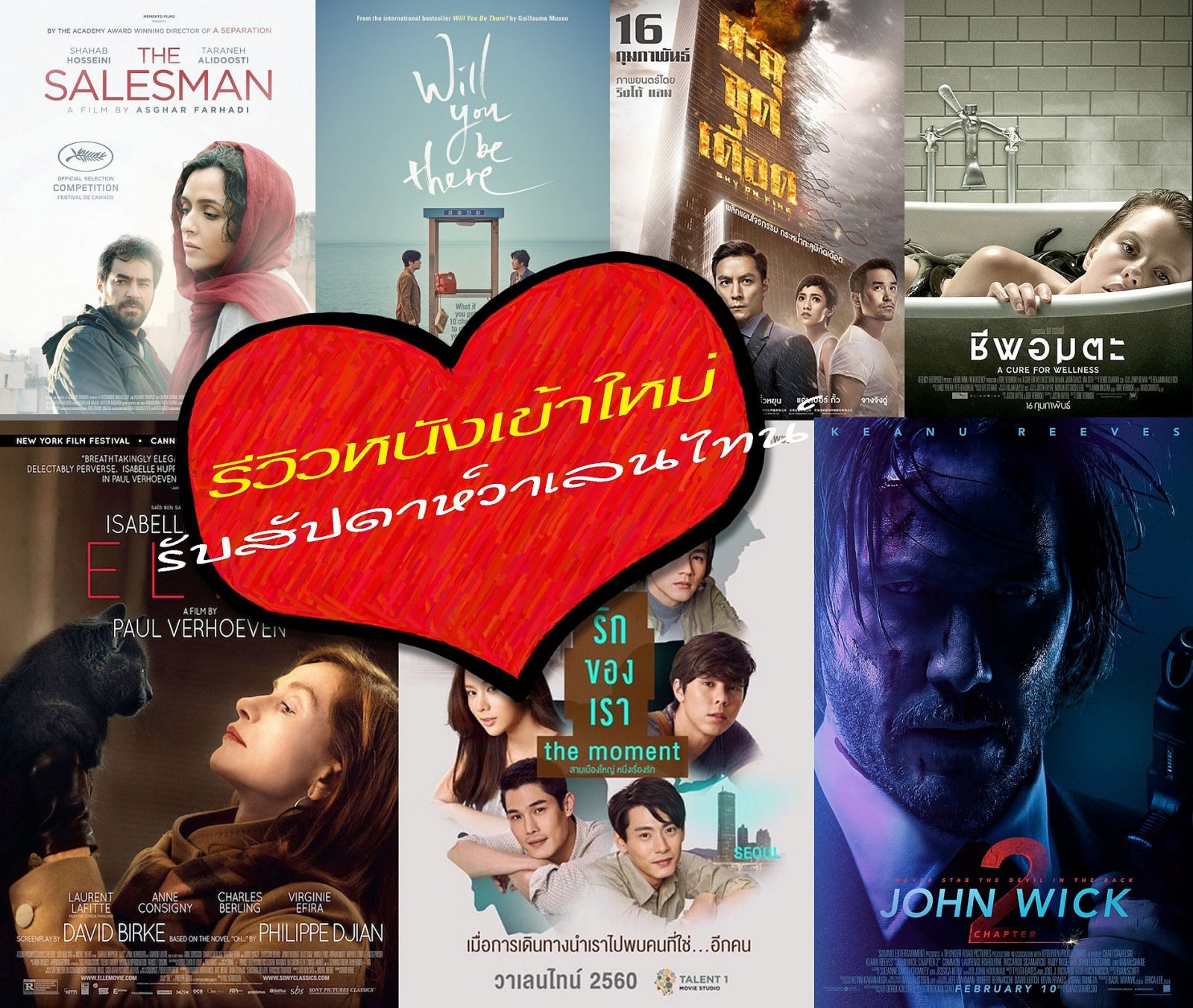 ขอต้อนรับอีกหนึ่งสัปดาห์สุดหฤหรรษ์ประจำเดือนกุมภาพันธ์ (ที่จะว่าไปแล้วมีหนังรักแบบสงบใจเพียงแค่สองเรื่องเท่านั้น) ด้วยโปรแกรมหนังอีกร่วมสิบเรื่อง นี่ยังไม่ได้นับว่าจะต้องชนกันกับเหล่าหนังติดลมบนจากสัปดาห์ที่แล้ว ซึ่งครานี้ 16.02.2017 ก็มีหนังที่น่าจะติดไปอีกซักเดือนนึงอยู่เหมือนกัน เรามาดูกันว่าศึกคราวนี้ใครจะอยู่ใครจะไป และมีเรื่องไหนน่าติดตามไปถึงรอบไฟนอลบ้าง ! รายชื่อผู้เข้าชิงประจำสัปดาห์นี้ที่ทีมเรารีวิวมาทั้งหมด คือ The Salesman, Will You Be There, A Cure For Wellness, Sky On Fire ทะลุจุดเดือด, Elle, รักของเรา The Moment, John Wick Chapter 2 (คลิกอ่านรีวิวจากชื่อหนังได้เลยนะคะ) ด้วยความสัตย์จริงแอดมินแอบเรียงลำดับไว้เพื่อการเลือกดูที่ง่ายขึ้นด้วยการคาดเดาส่วนตัวค่ะ ว่าเรื่องไหนน่าจะจากเราไปก่อนหากอยากดูให้รีบจองตั๋วซะ ! The Salesman https://youtu.be/UpD-_OuTcvc ต้องยอมรับระดับนึงว่าหนังแขก ไม่ว่าจะแขกขาวแขกดำ แขกไหนก็แล้วแต่ถึงแม้จะคุณภาพคับโรงมาก ๆ ก็ไม่ค่อยมีโอกาสในการแย่งชิงพื้นที่รอบฉายกับชาวบ้านเขาเสียเท่าไหร่นัก ยิ่งมาช่วงนี้ที่มีหนังตลาดเยอะมากด้วยก็คงจะได้ลาจากไปก่อนเป็นเรื่องแรก ๆ (กระซิก ๆ) หนังดราม่าฟอร์มดี มีระทึกจนหยดสุดท้าย The Salesman เนื้อเรื่องเกี่ยวกับคู่สามีภรรยาชนชั้นกลางที่ประสบปัญหาแผ่นดินไหวจึงต้องย้ายที่อยู่แต่บังเอิญต้องมาเช่าที่พักต่อจากสาวคาวโลกีย์ควงคู่นอนไม่ซ้ำหน้า อยู่มาวันนึงก็โดนดีเข้ามีชายอุกอาจบุกเข้ามาในห้องสร้างบาดแผลอันเลวร้ายต่อ รานา ผู้เป็นภรรยา ทิ้งไว้เพียงร่องรอยปริศนาอันดำมืดทำให้ต้องสืบสาวกันต่อไป ! ผลงานของ อัสการ์ ฟาร์ฮาร์ดี ผู้กำกับชาวอิหร่าน…13/02/2017
